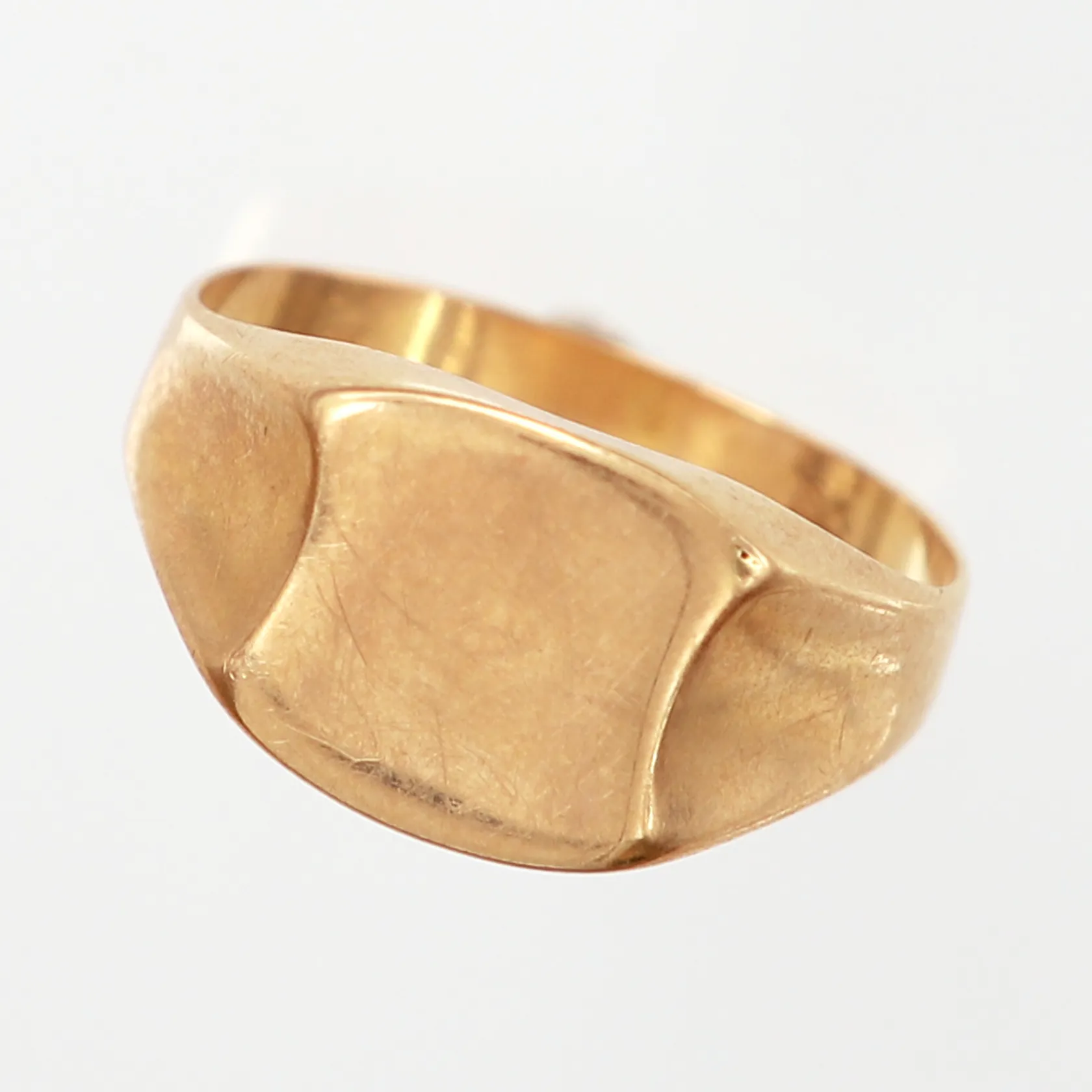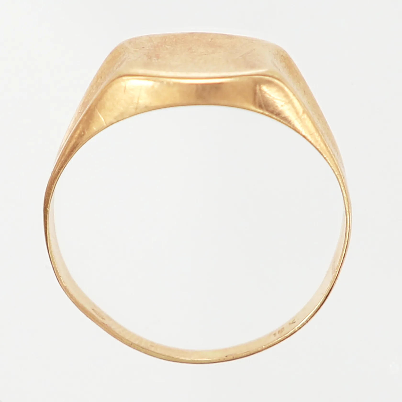 Klackring, stl 19, bredd: 2,5-11mm, något bucklig insida vid klack, 18K Vikt: 2,6 g.