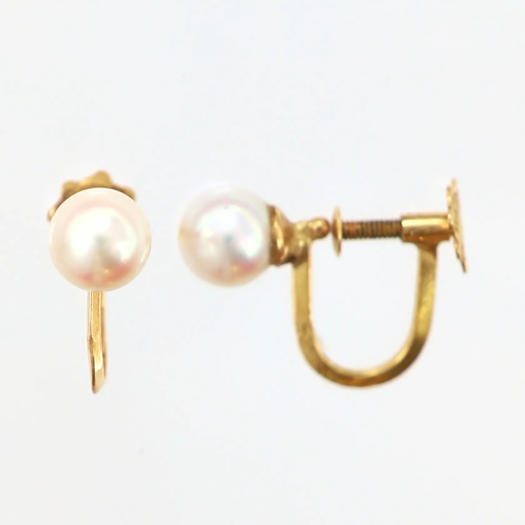 Ett par örhängen med pärla, Ø6mm, längd: 18mm, skruvlås, bakre skruvplatta skev, 18K Vikt: 2 g.