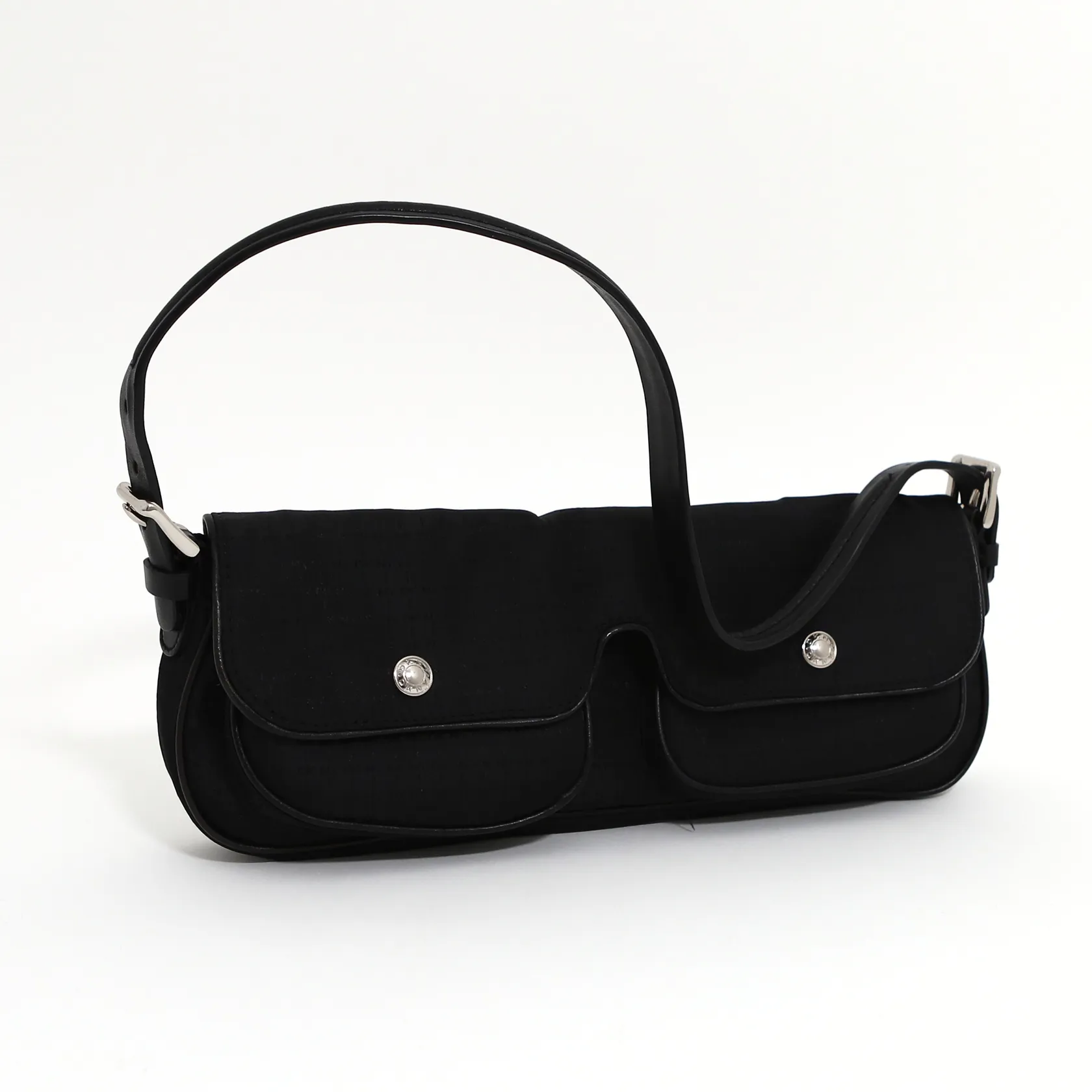 Väska DKNY, monogram mönstrad, 4,5x13x32cm, innerfack med dragkedja, ytterfack med tryckknappar, svart läderrem 55cm, detaljer i vitmetall