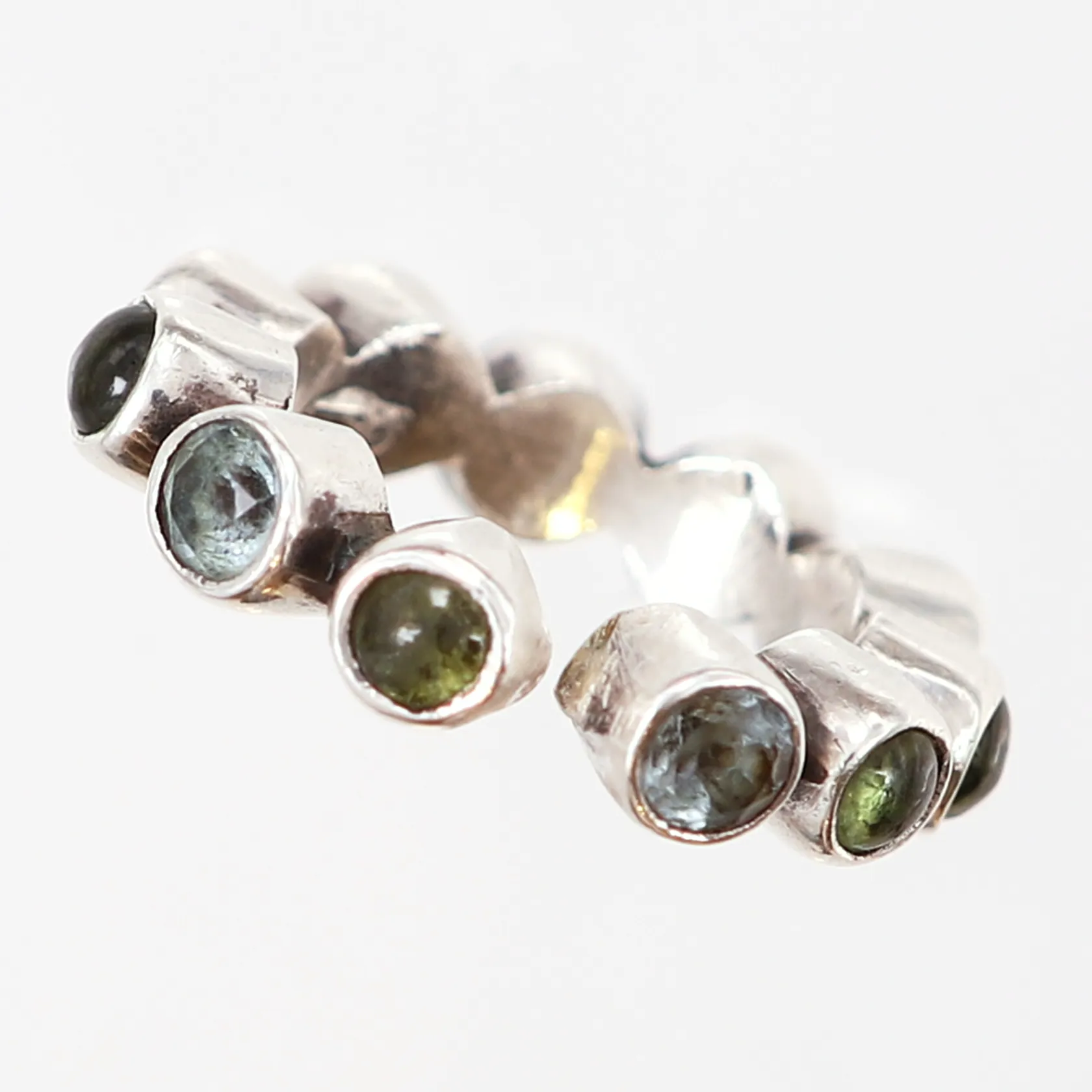 Ring KumKum, gröna och vita stenar, stl 14½ justerbar, bredd: 4mm, silver 925/1000 Vikt: 4,3 g.