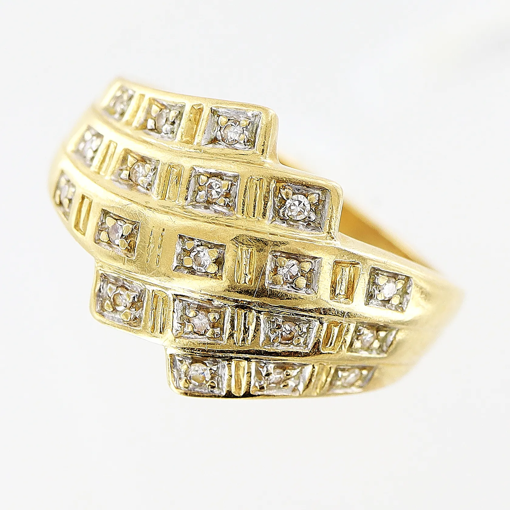 Ring, diamanter 19 x ca 0,005ct, stl 15¼, bredd 2-11,5mm, 18K Vikt: 3,2 g.