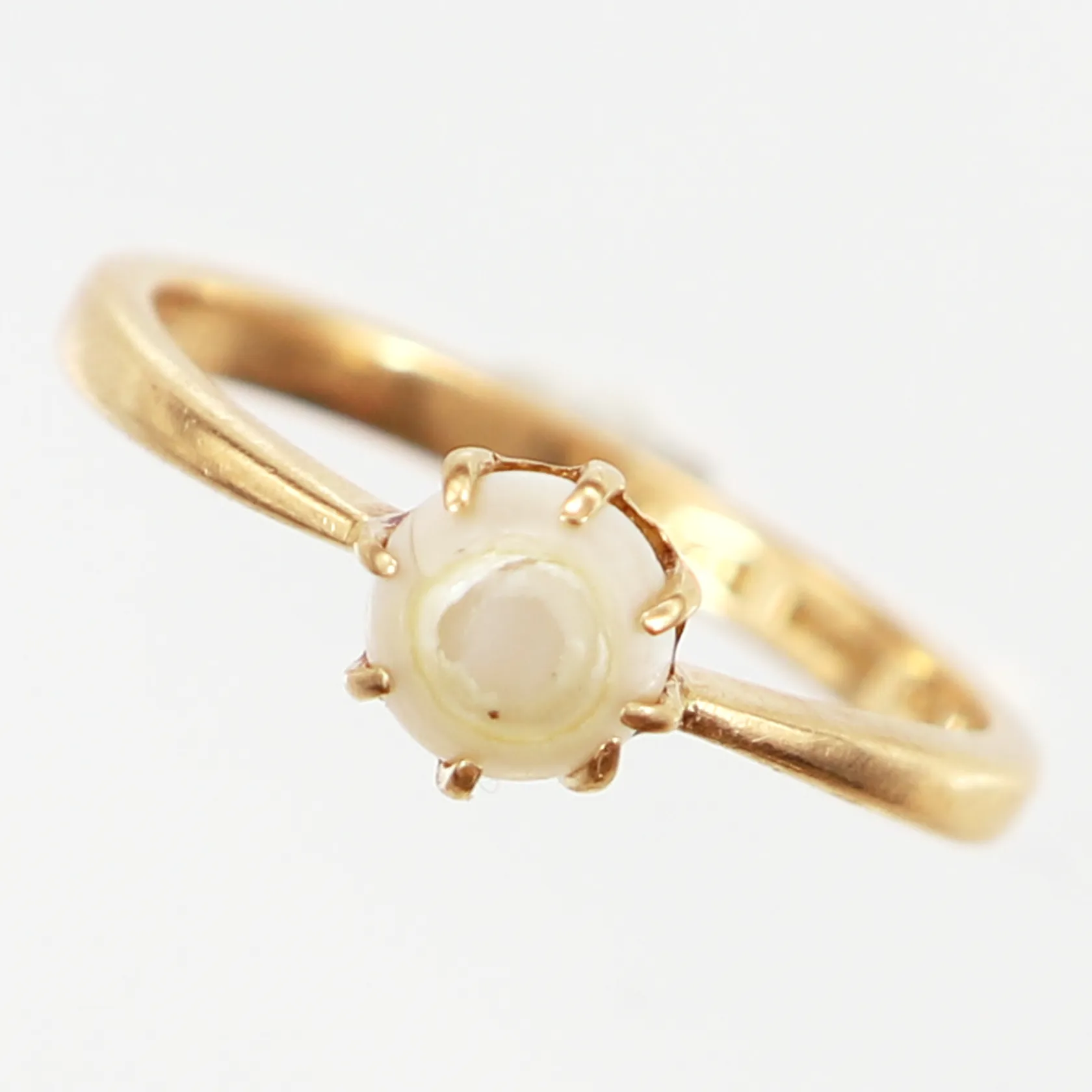 Ring med pärla, stl 16½, bredd: 2-6mm, slitage på pärla samt lös fattning, 18K Vikt: 2,2 g.