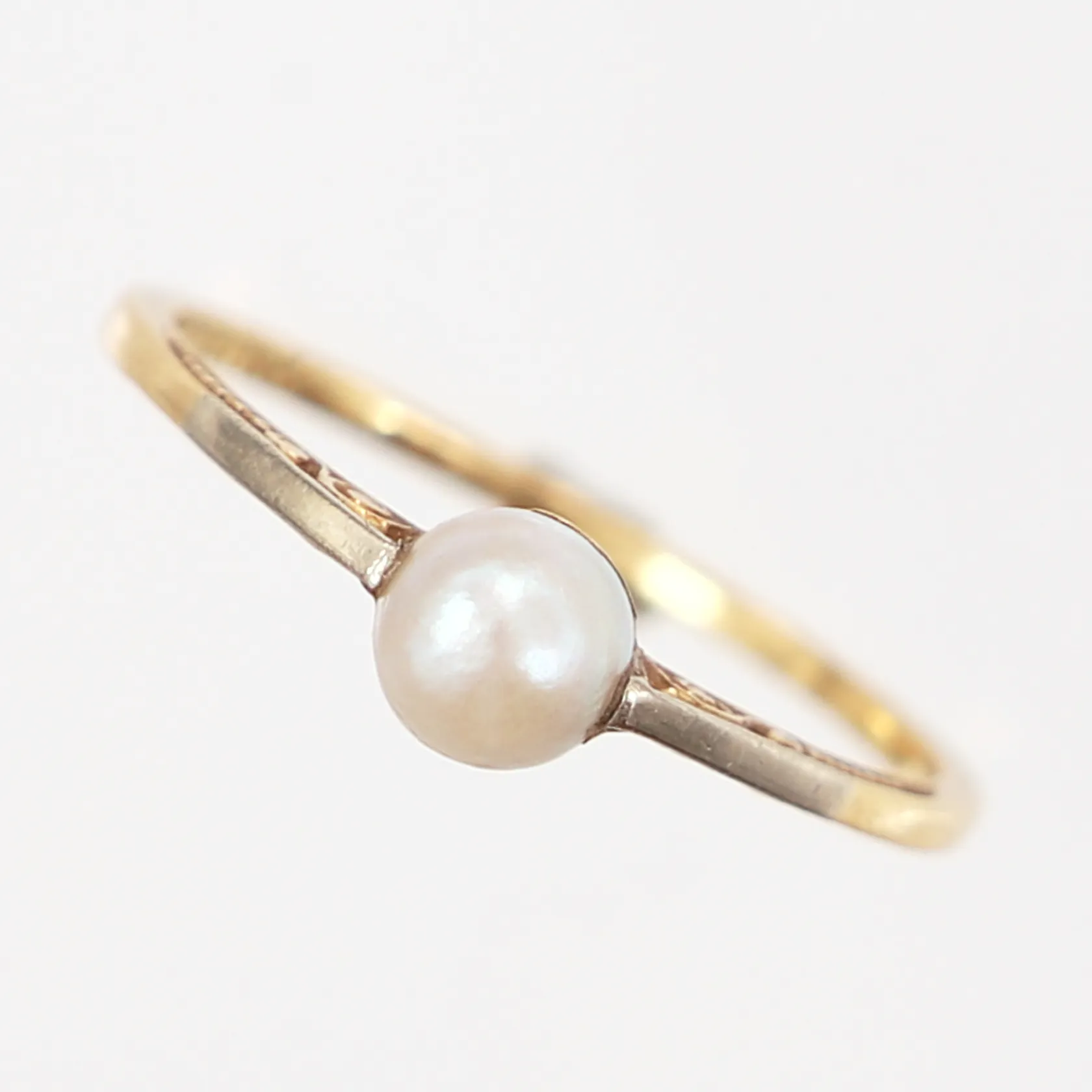 Ring med pärla, stl 17¼, bredd: 1-5mm, 18K Vikt: 1,5 g.