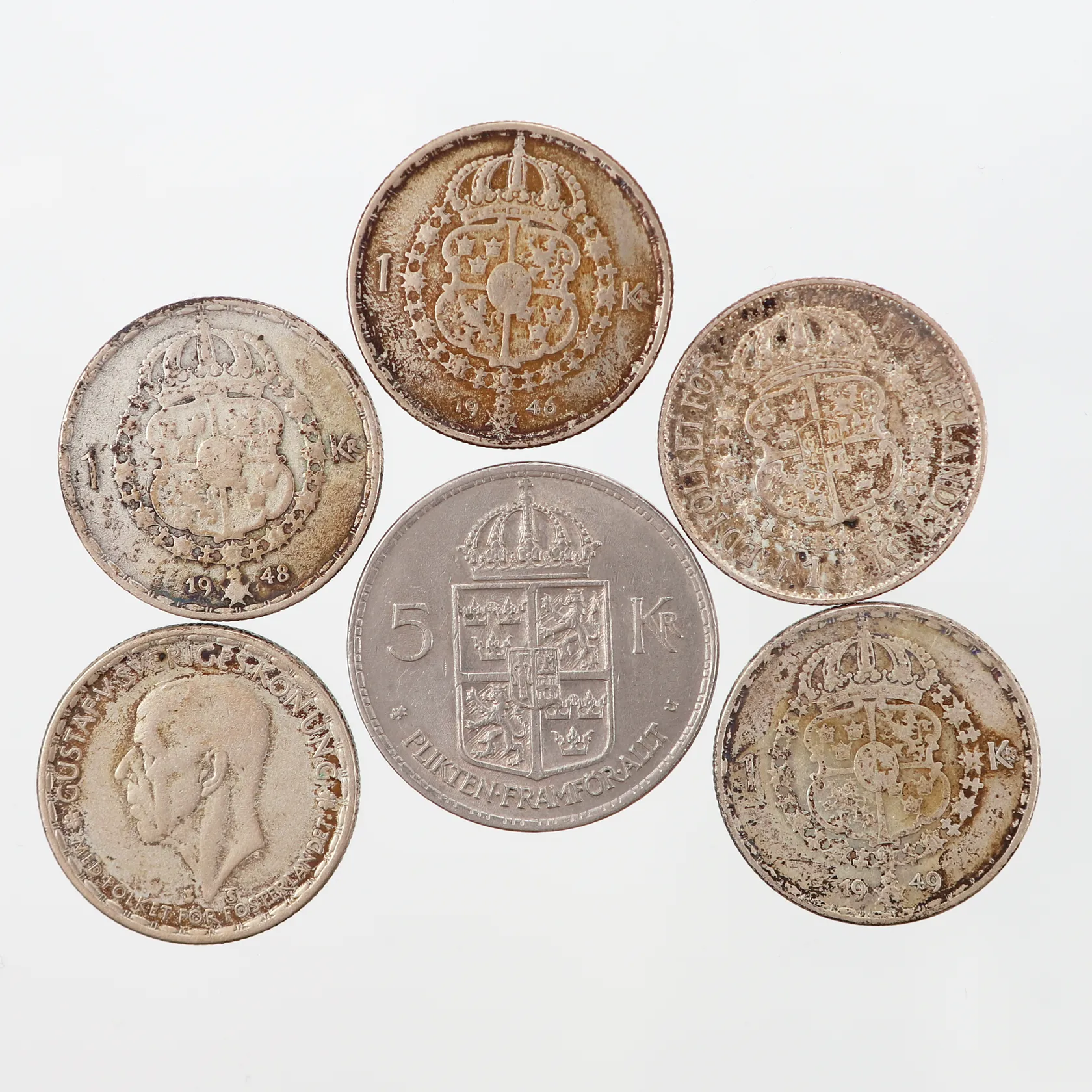 Mynt, 5 enkronor, 1 femkrona, silver 400/1000 Vikt: 44,8 g.