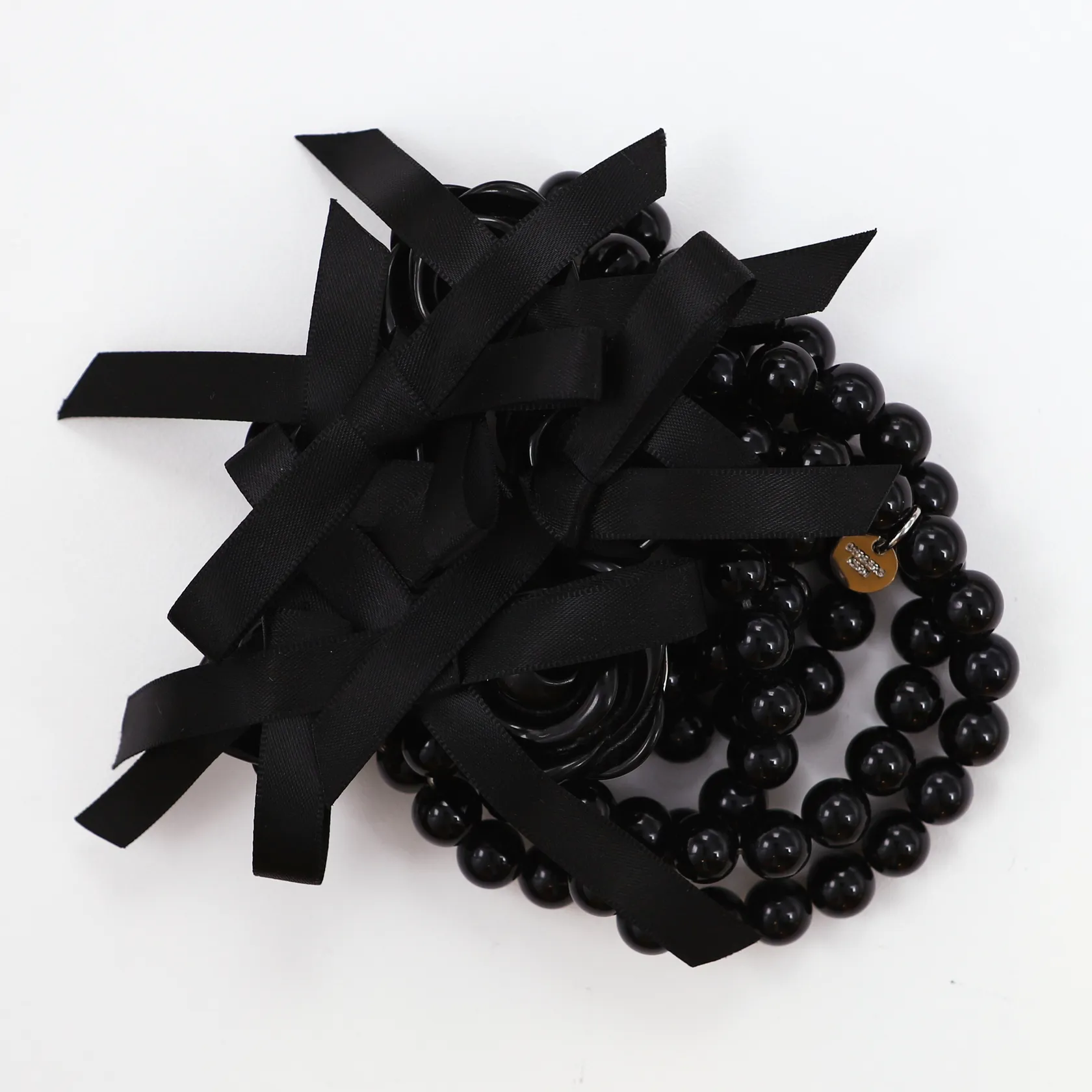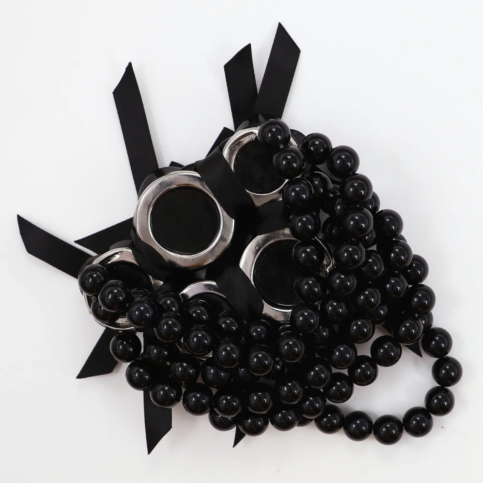 Armband, sexradigt, Dyrberg & Kern, svarta plastpärlor, vitmetall, innermått ca 19cm, bredd ca 60mm, originaletui