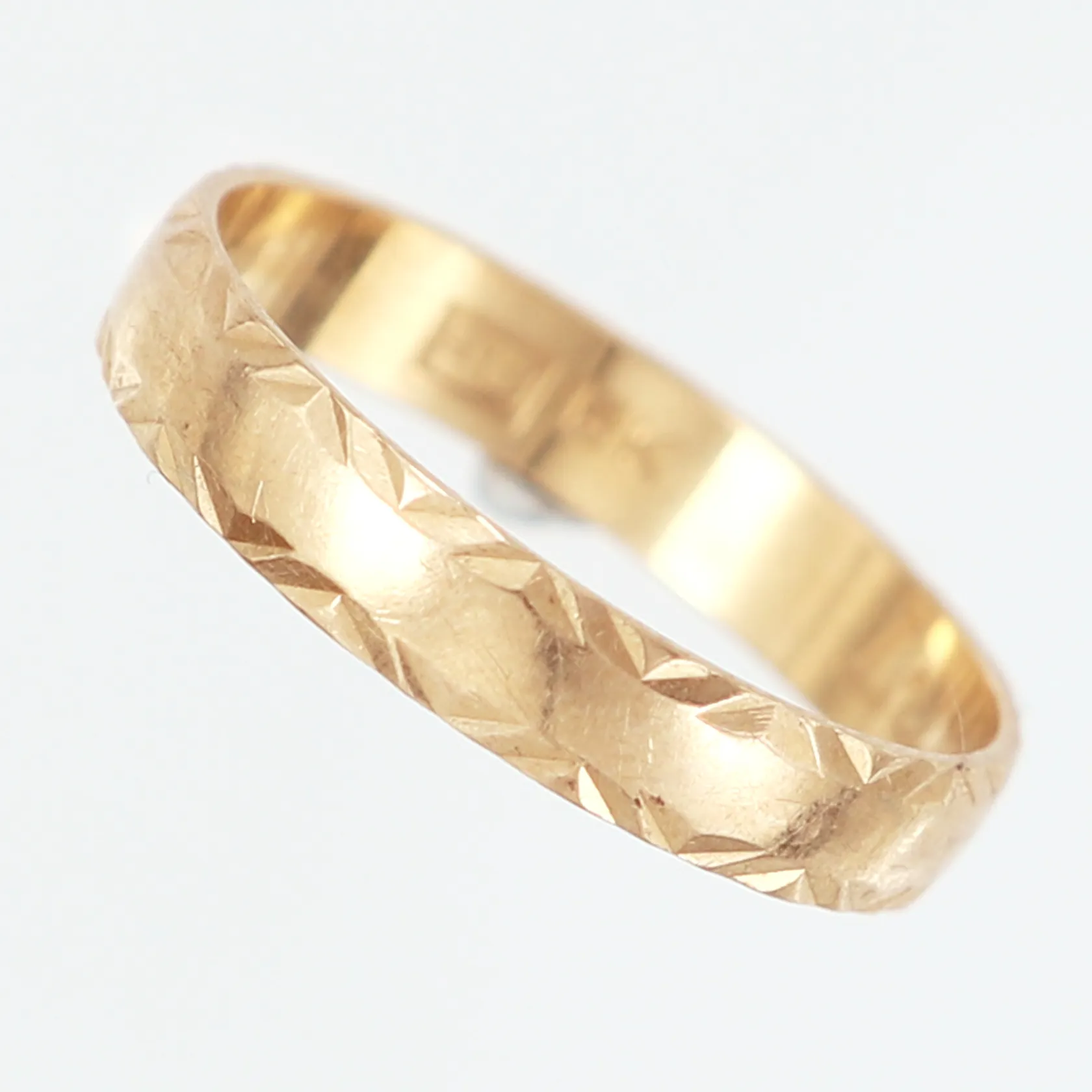 Ring mönstrad, stl 20, bredd: 4mm, gravyr, 18K Vikt: 3 g.