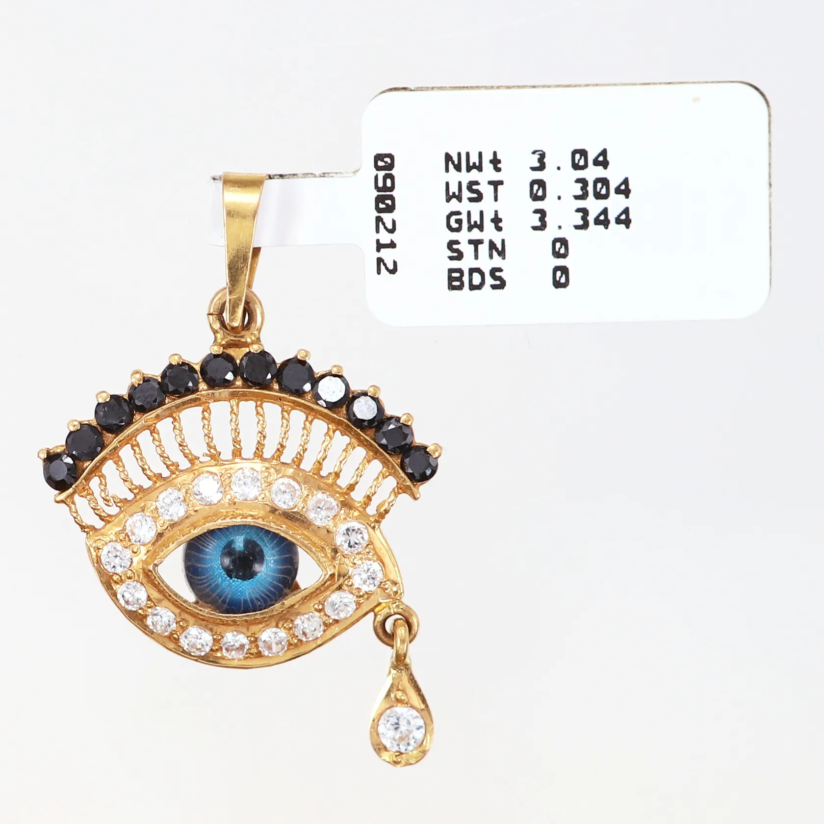 Hänge öga, vita samt svarta stenar, 28x30mm, 21K Vikt: 3,4 g.