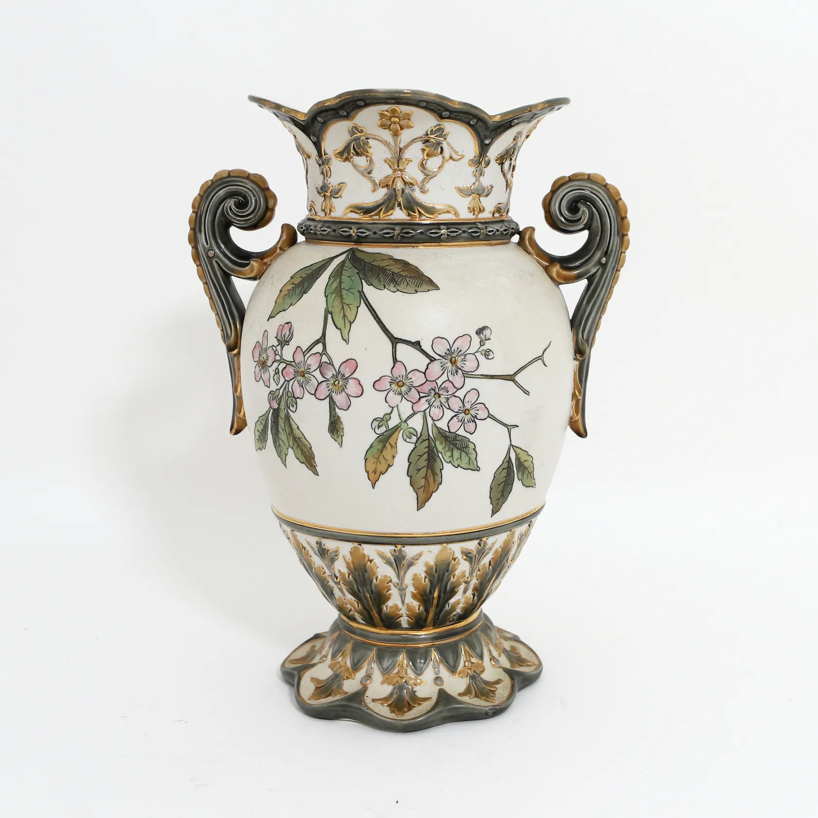 Vas Majolika Rörstrand, höjd: ca 30cm, bredd: ca 15-23cm troligen runt år 1900, fläckar förekommer Skickas med postpaket.