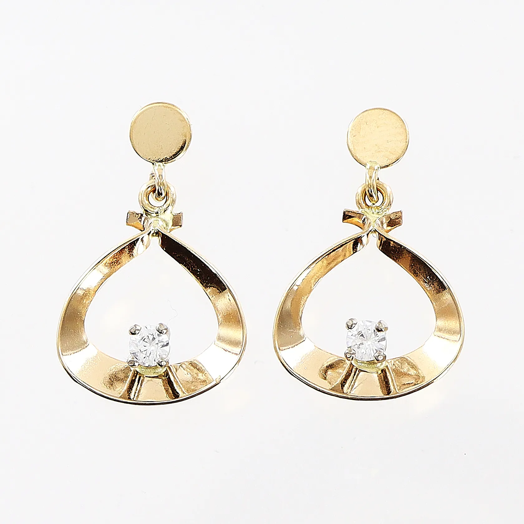 Ett par örhängen, 20mm, bredd 4-12mm, vita stenar, 18K Vikt: 1,6 g.