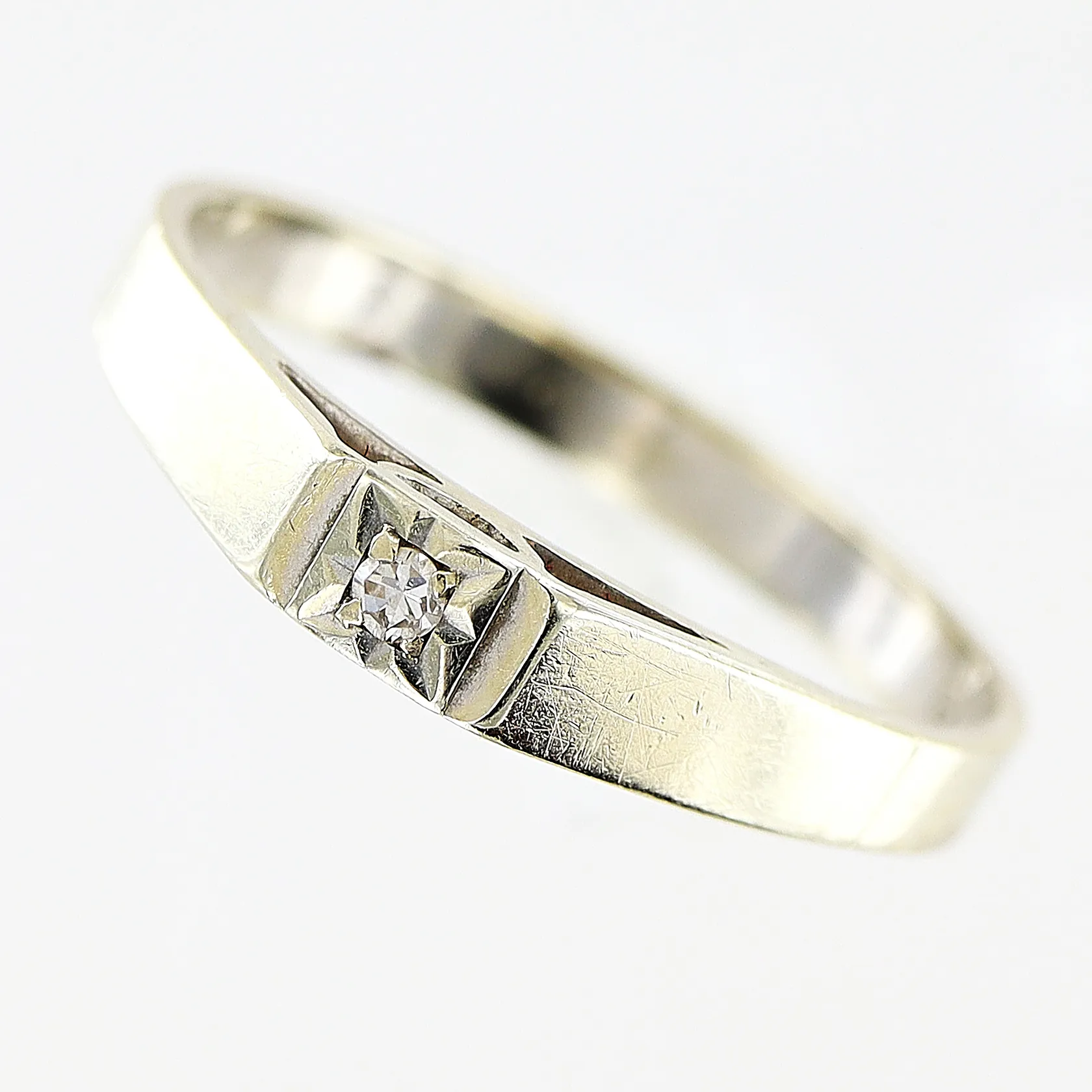 Ring, diamant ca 0,02ct, stl 17¼, bredd 2,5-3mm, vitguld, 18K Vikt: 1,9 g.