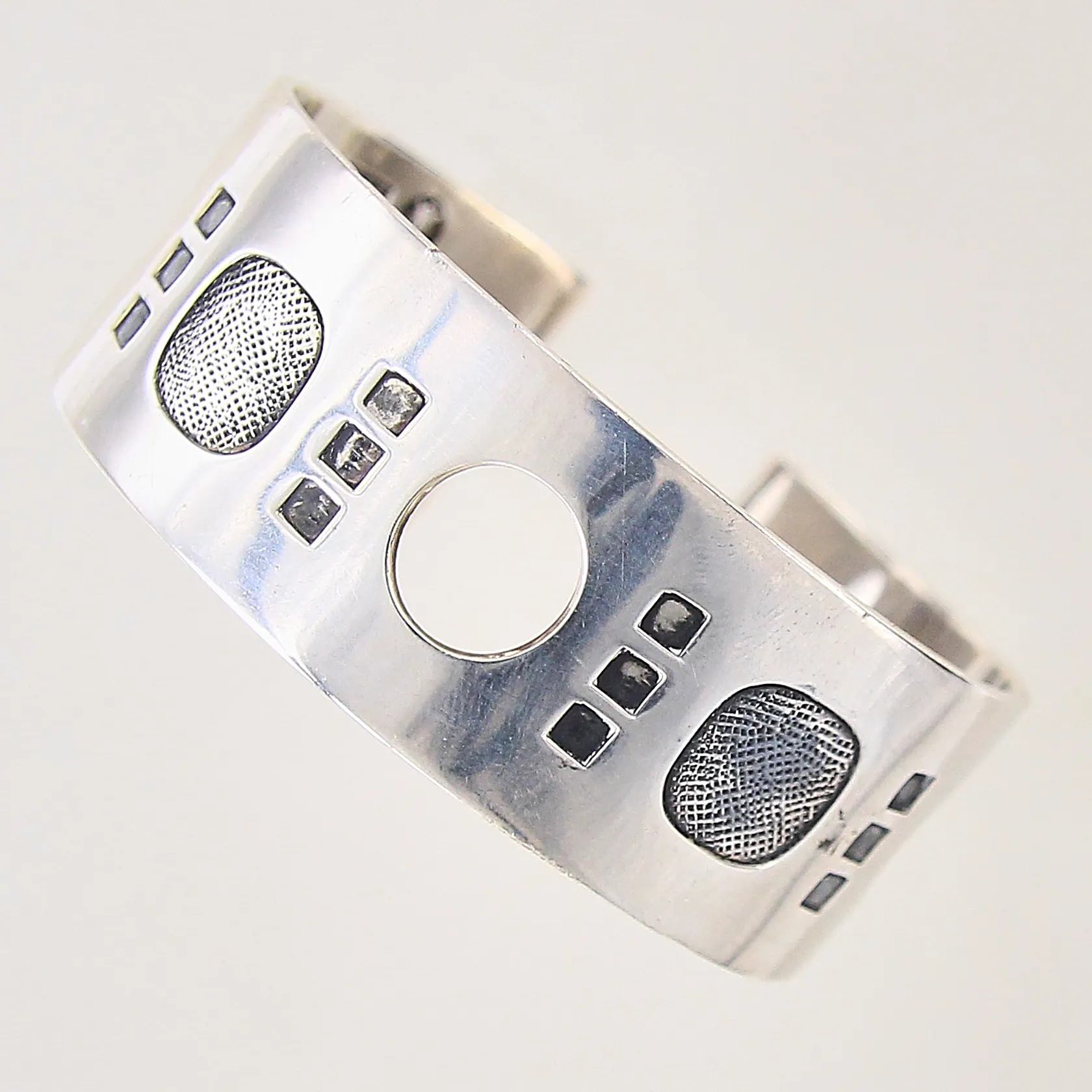 Stelt armband med dekor, Olle Olsson, år 1967, justerbar, bredd 24mm, något repig, silver 830/1000 Vikt: 57 g.