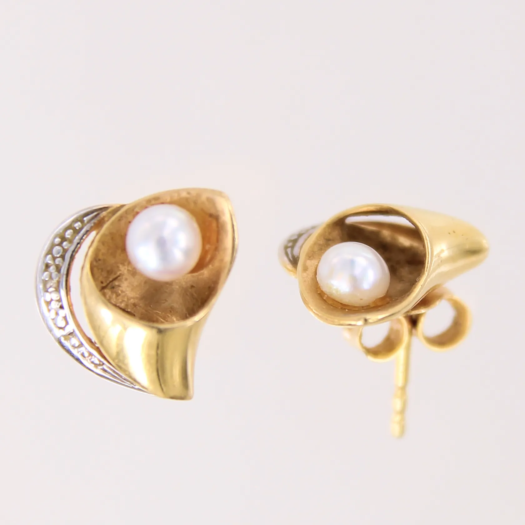 Ett par örhängen med odlade pärlor samt diamanter 2 x ca 0,005ct, 14x12mm, vitguldsdetaljer, 18K Vikt: 3,3 g.