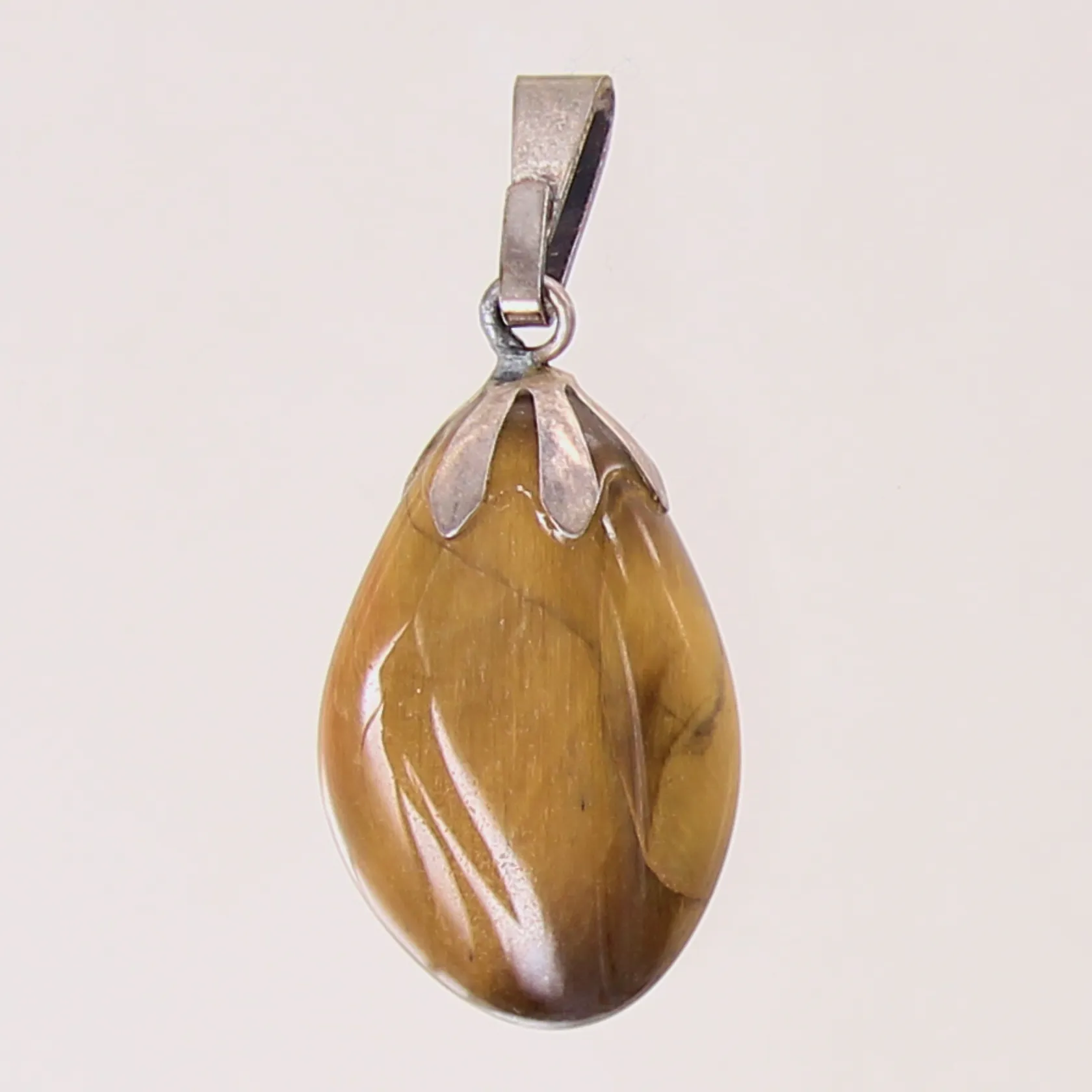 Hänge med tigeröga, 42x18mm inklusive ögla, ostämplad, silver Vikt: 7,7 g.