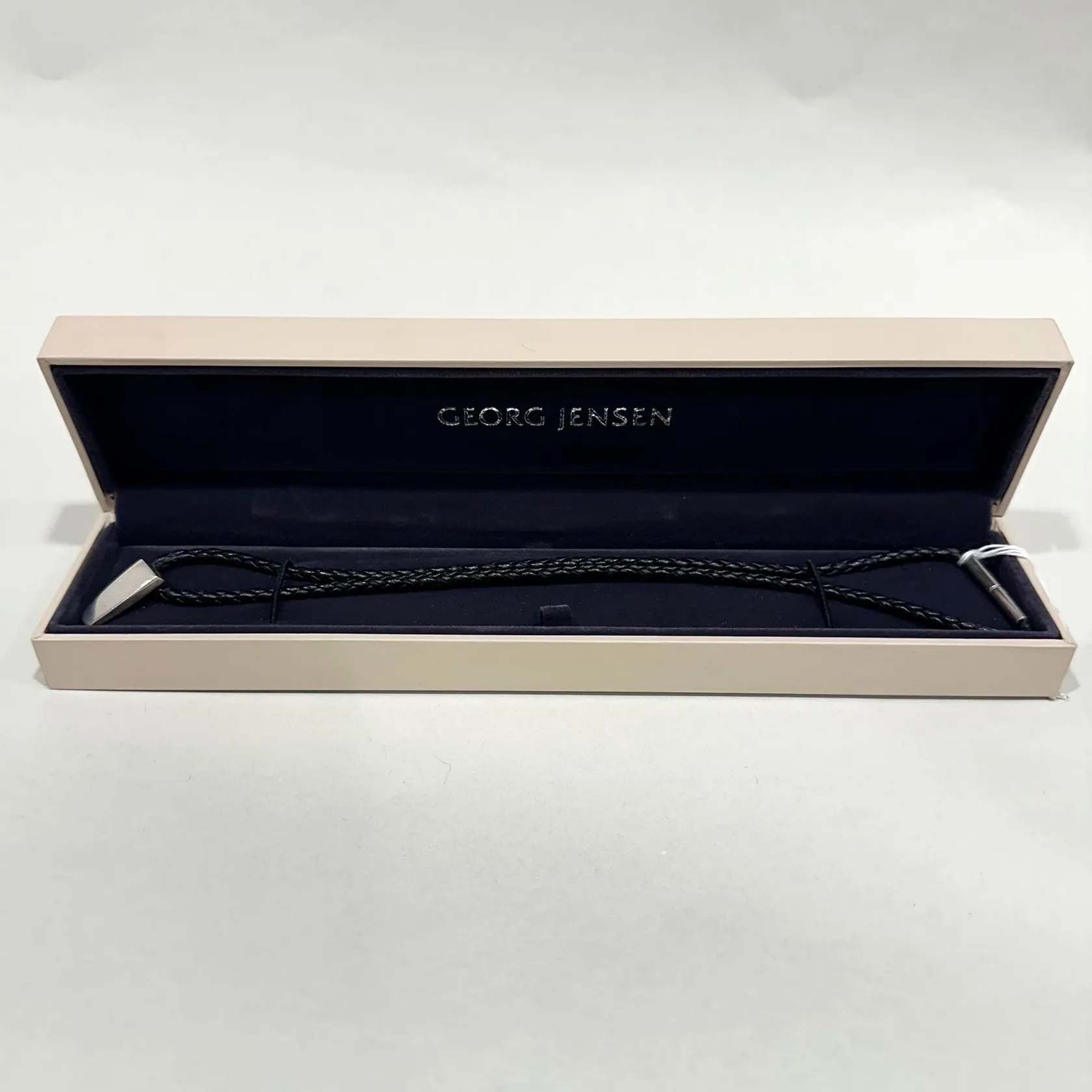 Collier, Victory, Ragnar Jörgensen för Georg Jensen, nr 423, längd ca 46cm, bredd 3mm, läderrem, hänge samt lås i silver 925/1000, originaletui, bruttovikt 10,3g Vikt: 10,3 g.