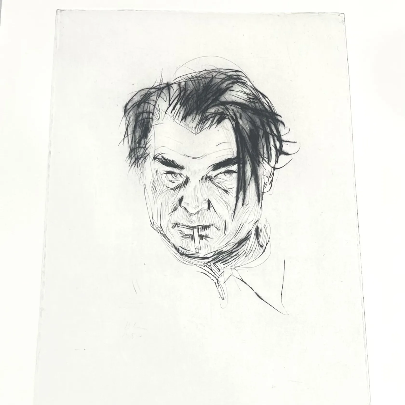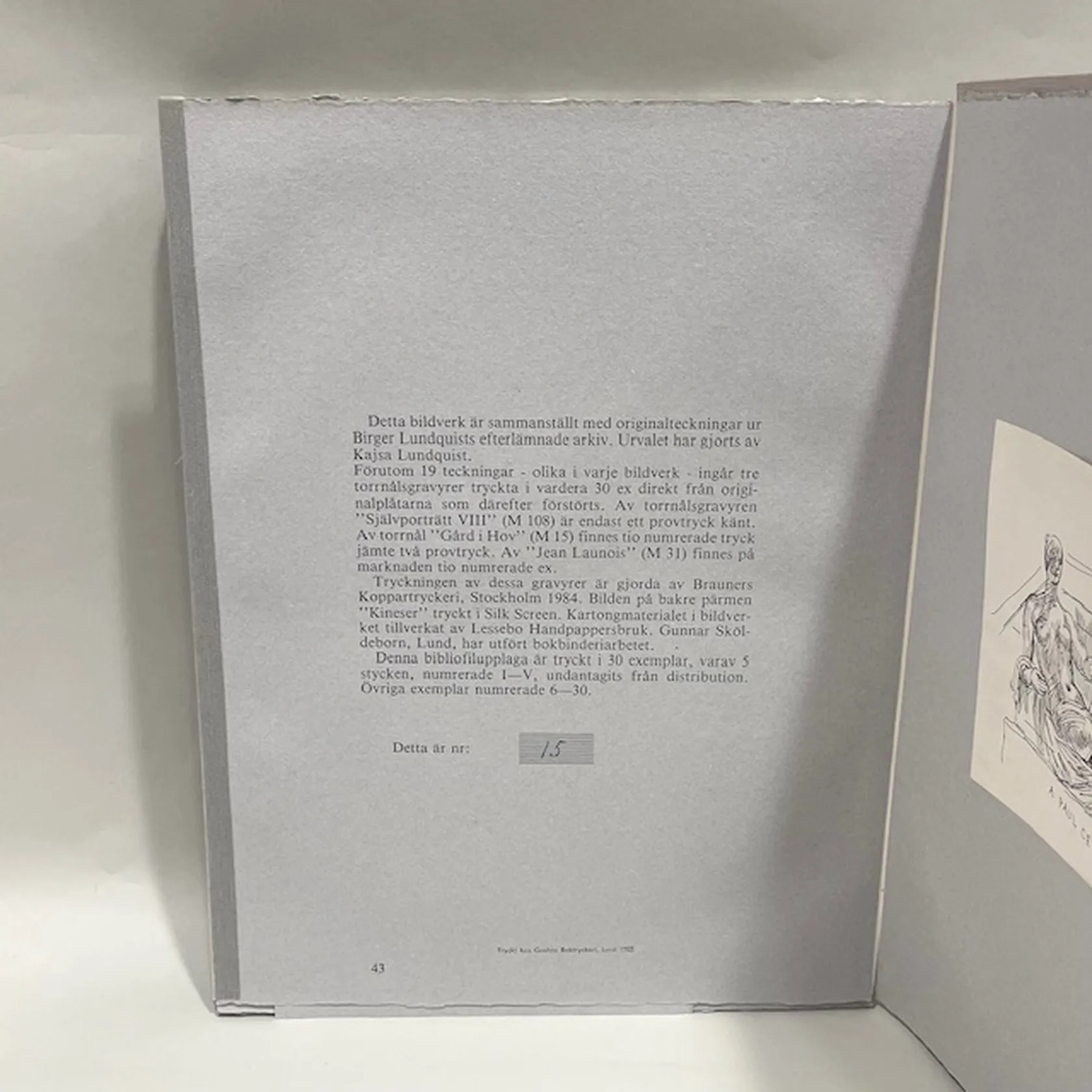 Folder, Birger Lundqvist, bildverk med 20 teckningar samt 3 torrnålsgravyrer, signerade, numrerad 15/30, 40x30x3cm