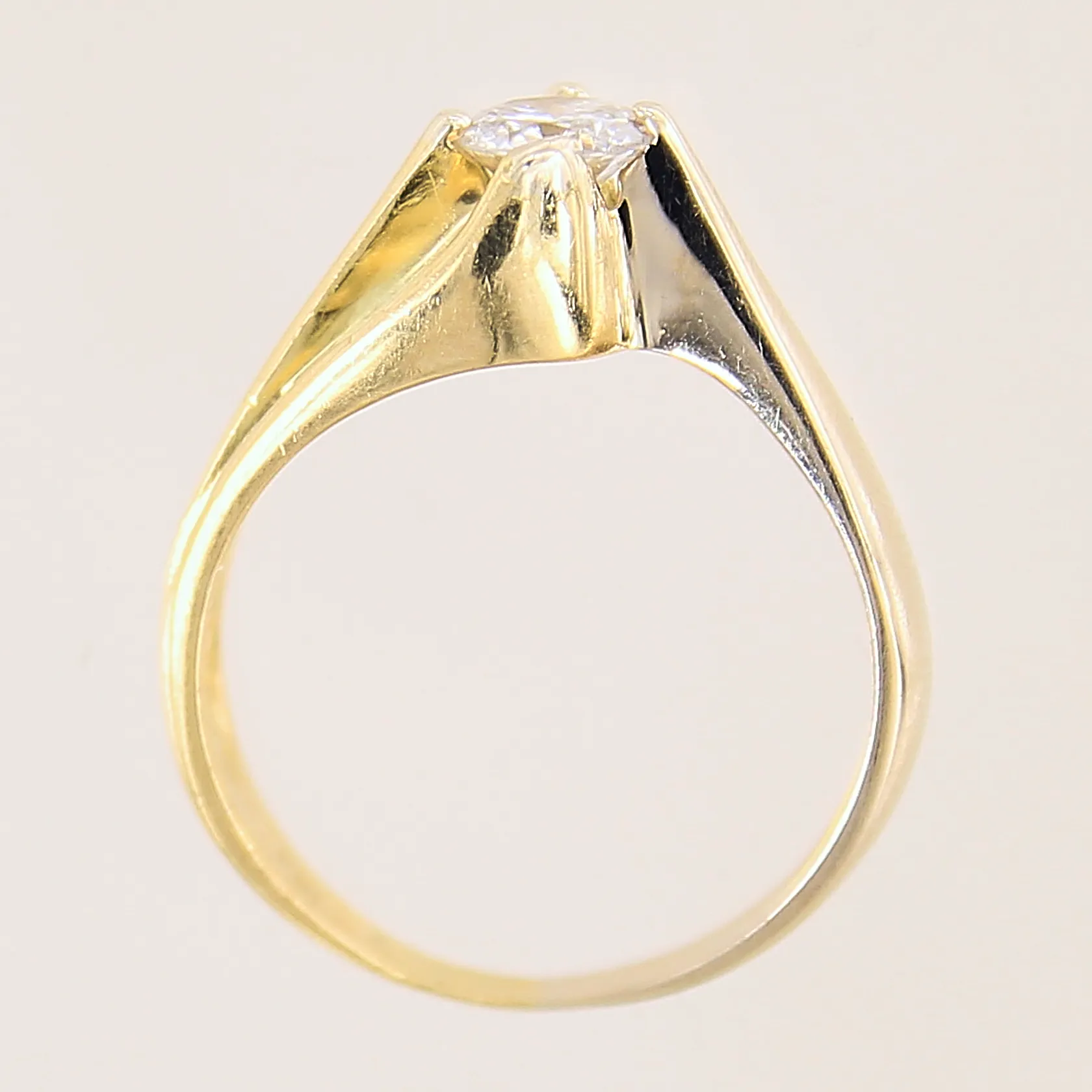 Ring med diamant ca 0,50ct kvalitet TCr(I)/SI, stl 16¾, bredd 2,5-8mm, 18K Vikt: 4,1 g.
