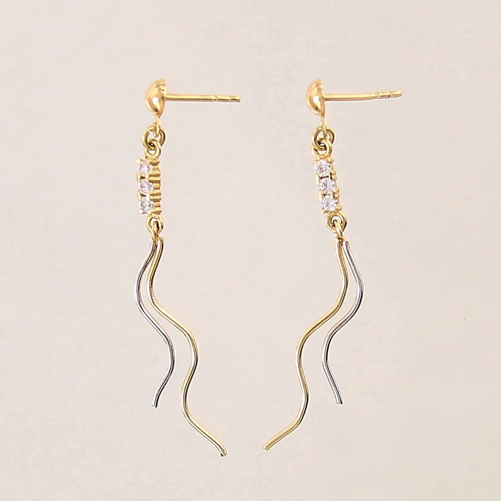 Ett par örhängen med vita stenar, längd: 40mm, bredd: 3,8-0,8mm, med gummistopp, 18K Vikt: 1,4 g.