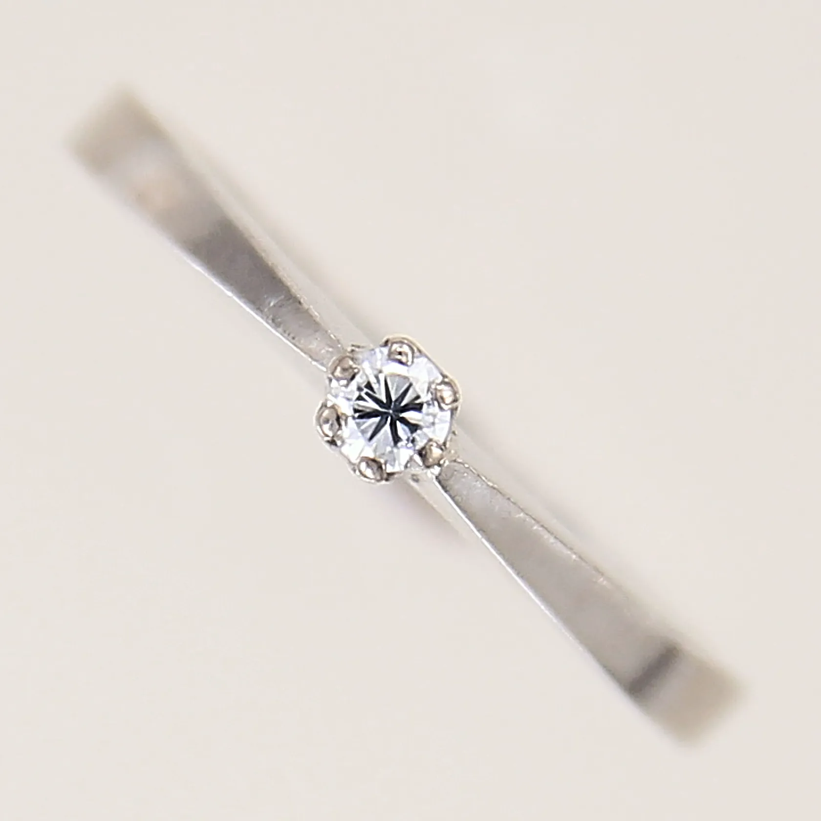 Ring med diamant ca 0,05ct, stl 16¾, bredd 1,8-2,8mm, vitguld, 18K Vikt: 2 g.