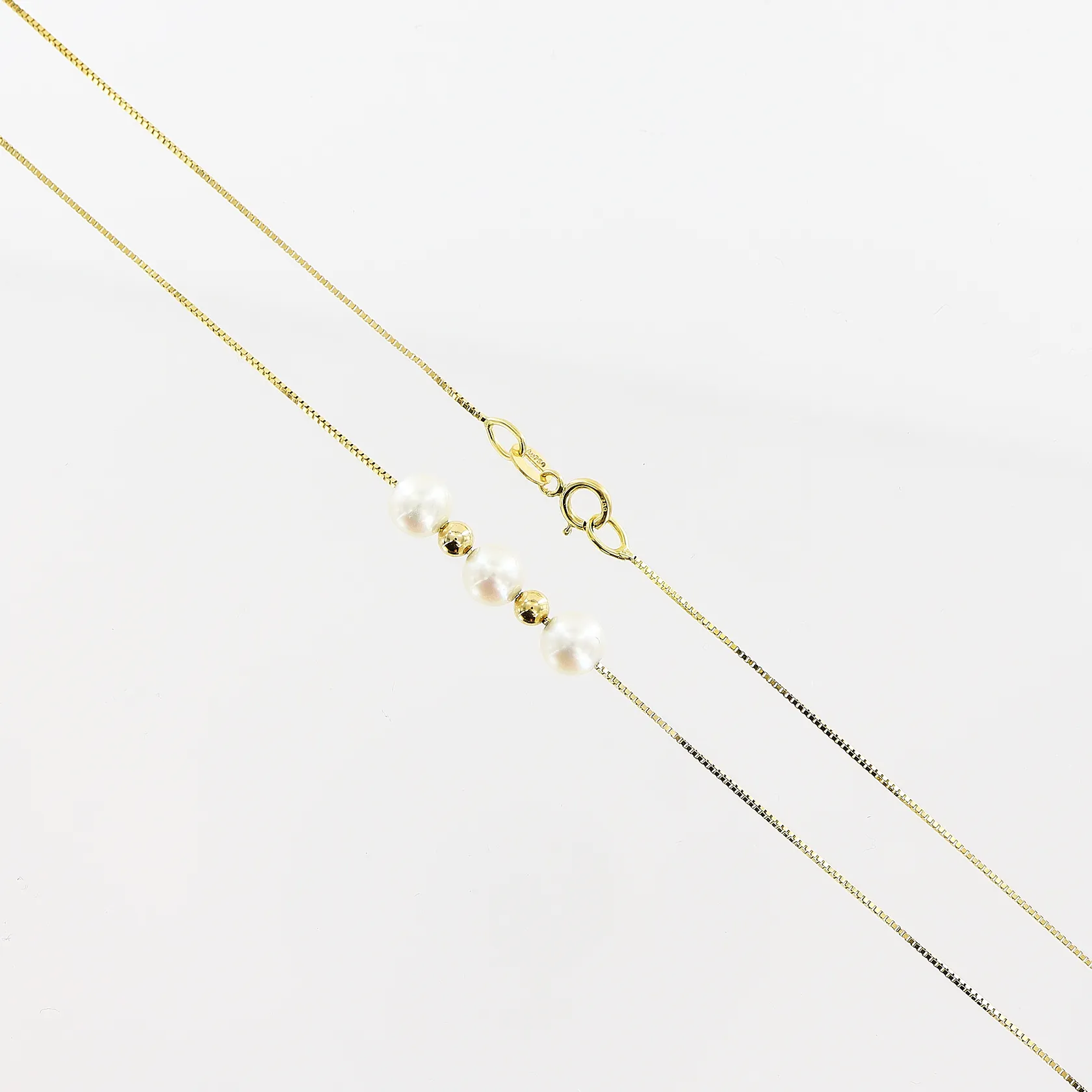 Collier, 40cm, bredd 0,5-5mm, odlade pärlor, 18K Vikt: 1,6 g.