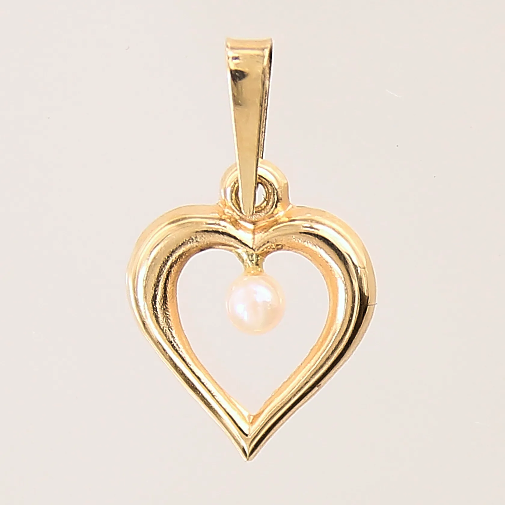 Hänge hjärta med imitationspärla, 19x11mm, 18K Vikt: 0,3 g.