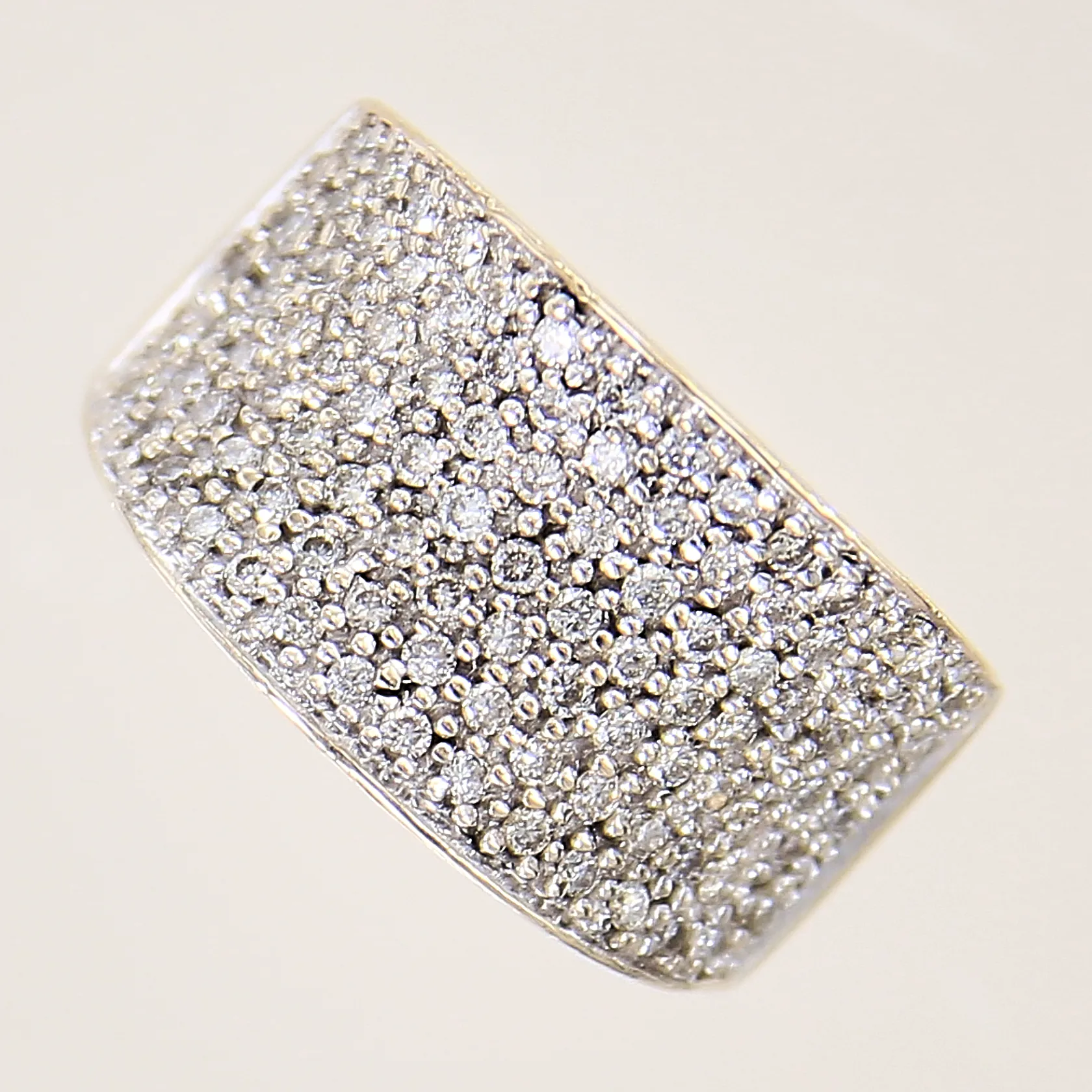 Ring med diamanter ca 100x 0,005-0,01ct, stl 16, bredd 5-11,5mm, GHA, vitguld, i behov av omrodiering, 18K Vikt: 9,8 g.