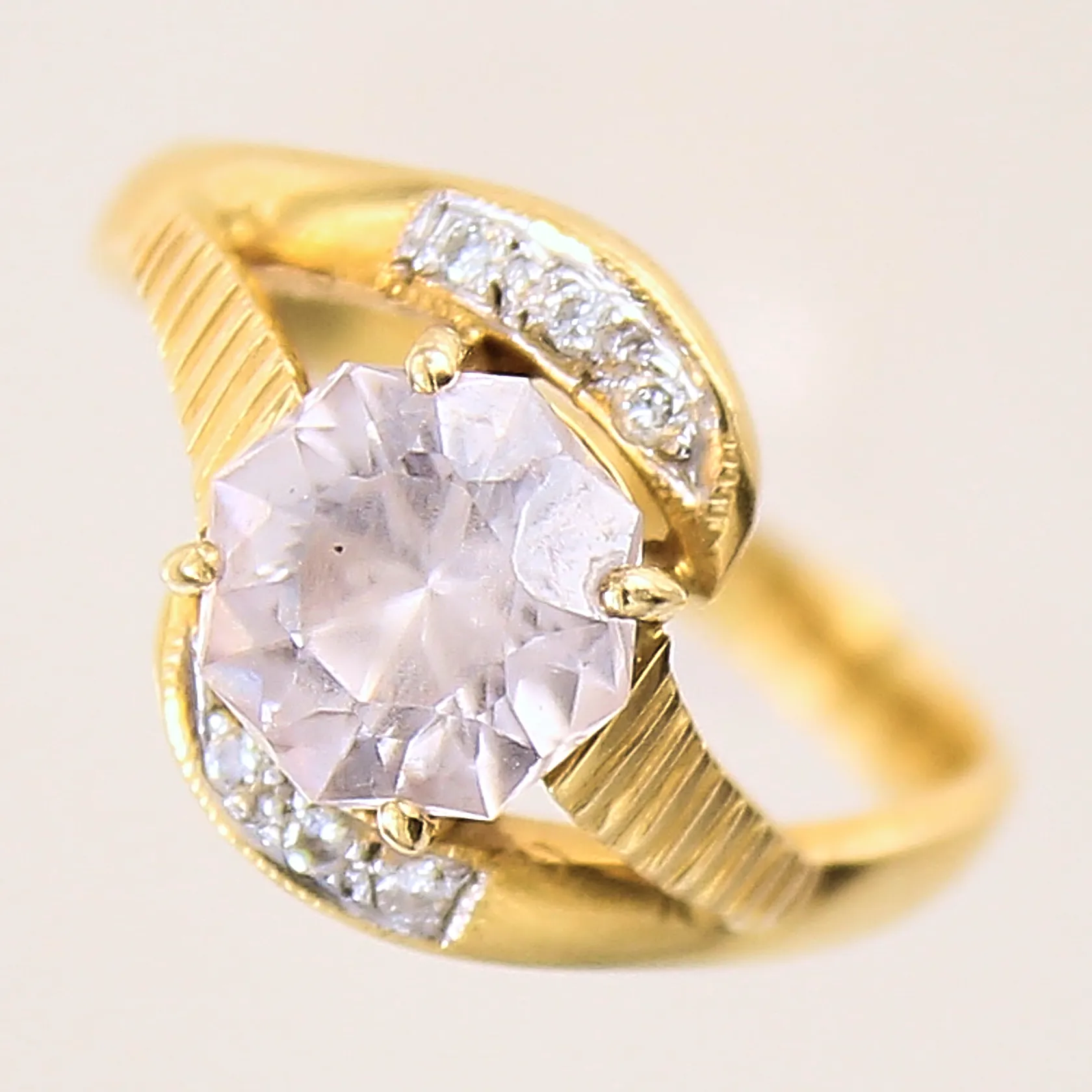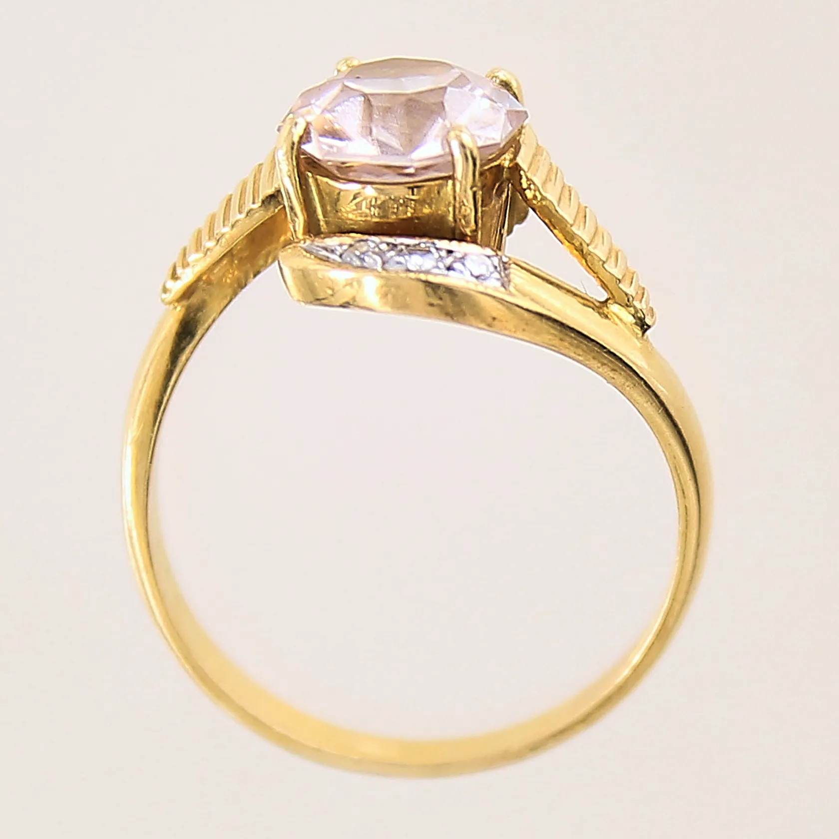 Ring med diamanter 6x ca 0,01ct samt ljuslila sten, stl 17, bredd 2-12mm, 18K Vikt: 4,4 g.