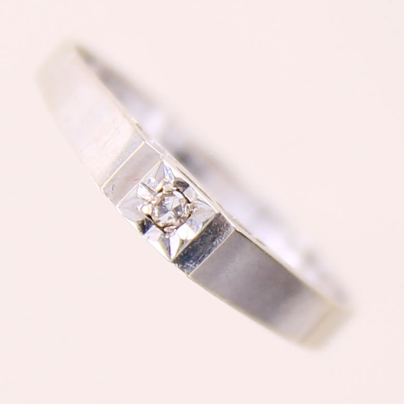 Ring med en diamant ca 0,02ct, stl: 16, bredd: 2,1-2,9mm, vitguld, 18K Vikt: 1,4 g.