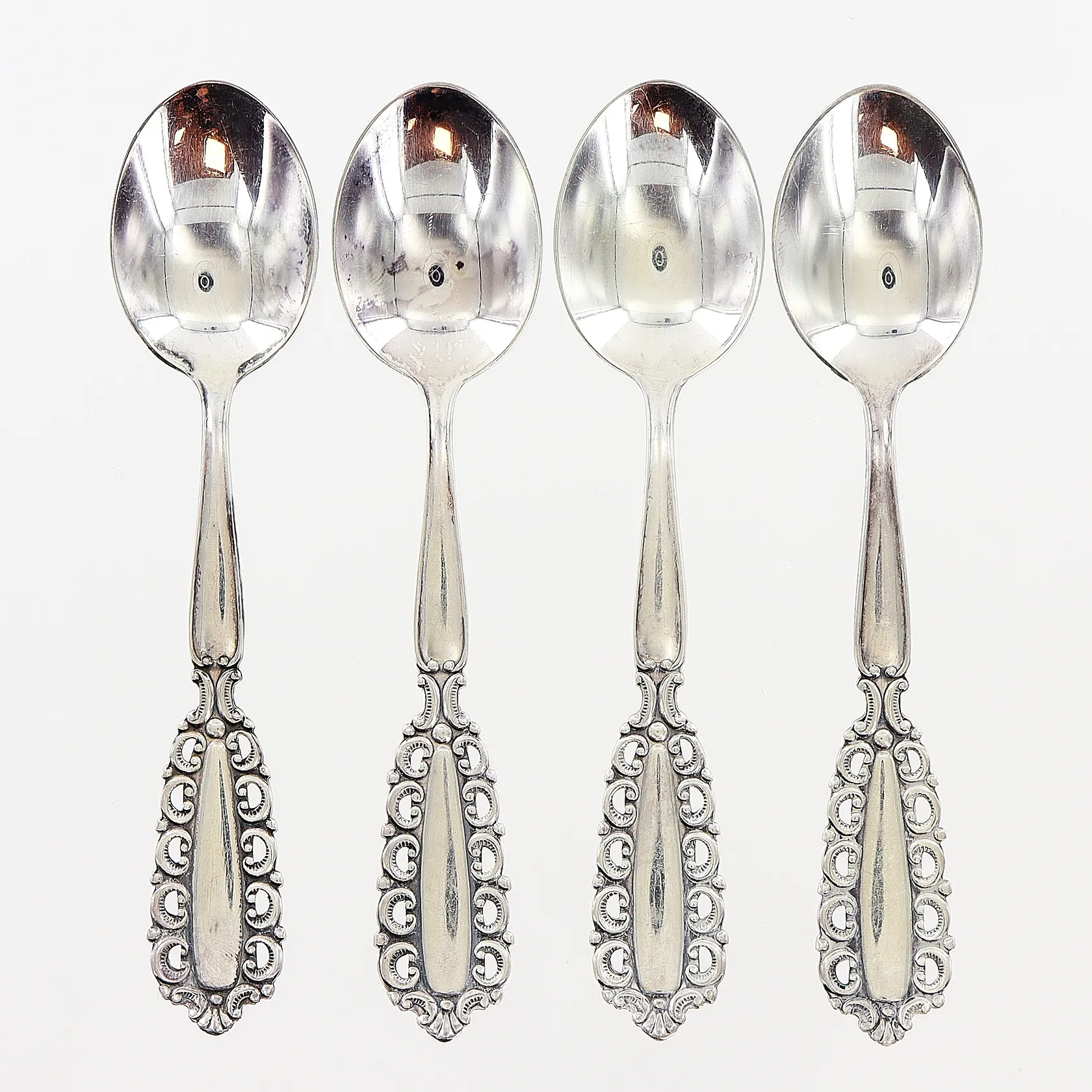 4 kaffeskedar modell Carmen, 100mm, GAB, kattfot, 830/1000 silver. Vikt: 34,1 g.