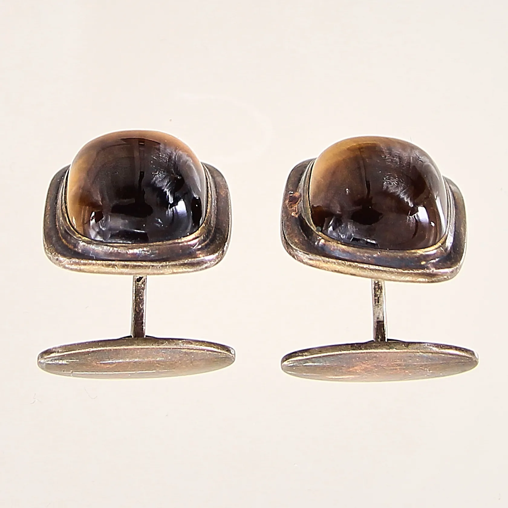 Ett par manschettknappar med tigerögon, Ø18,5mm, silver 830/1000 Vikt: 21 g.