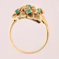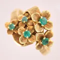 Ring blomdekor med gröna stenar troligen smaragder, stl: 19¾, bredd: 2-17,4mm, 18K Vikt: 7,4 g.