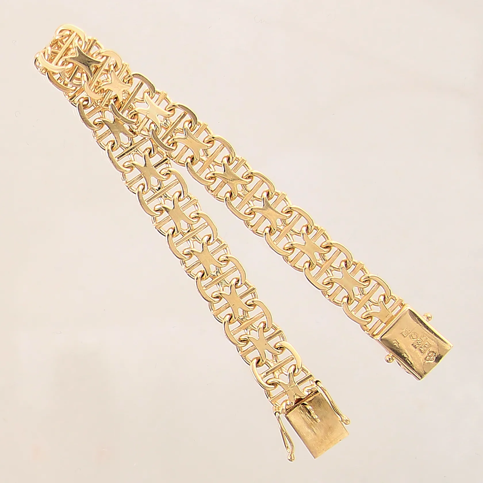 Armband X-länk med stav, längd 18,5cm, bredd 9mm, 18K Vikt: 21,4 g.