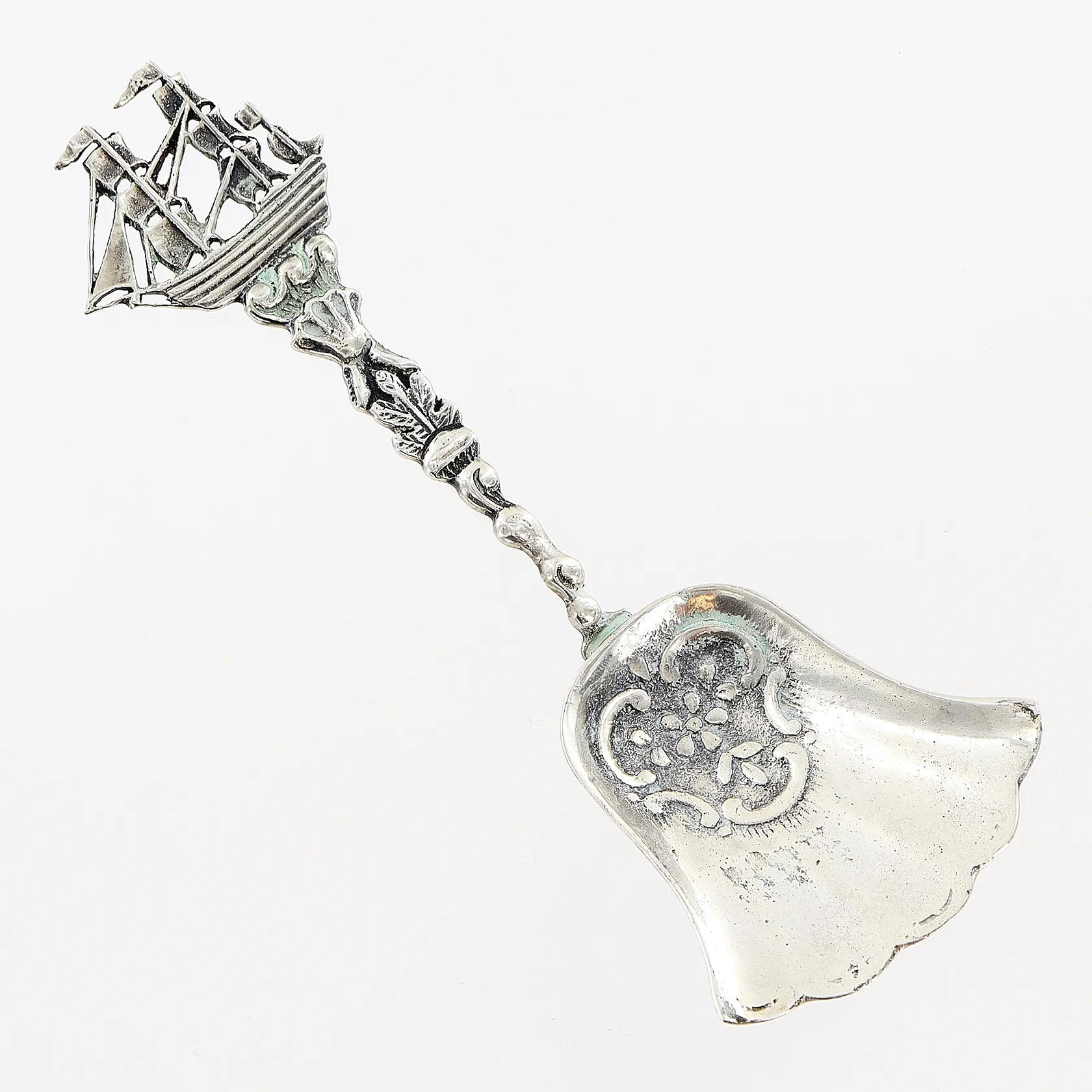 Serveringssked "skeppsmotiv", 132mm, Gewe, silver 830/1000. Vikt: 30,1 g.