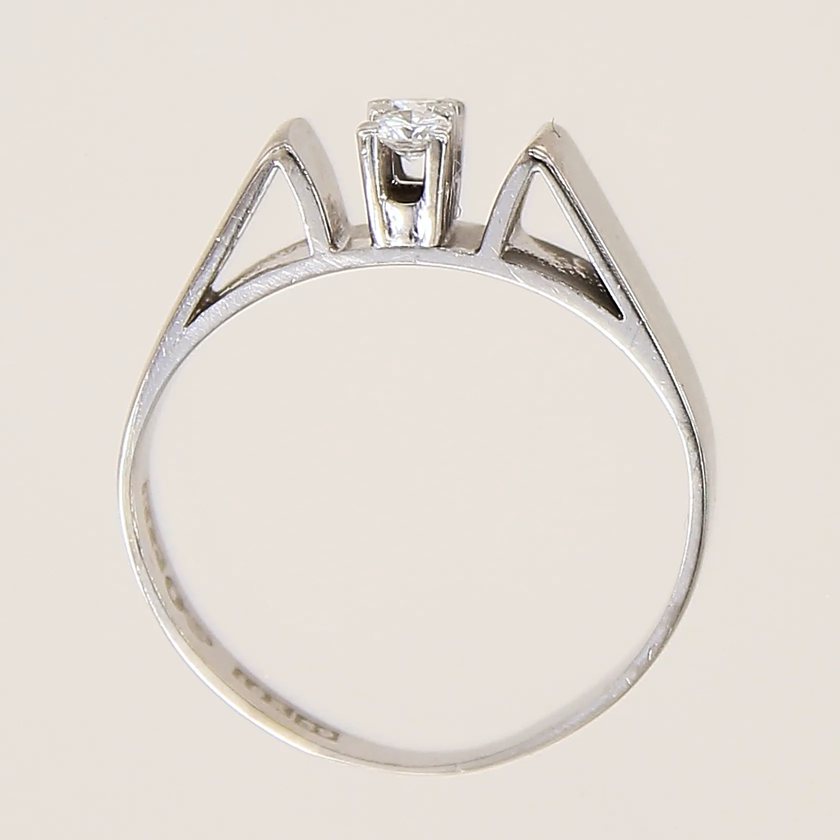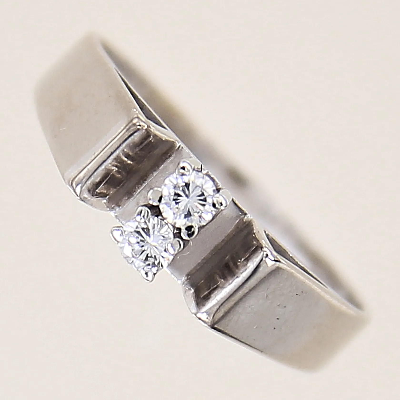 Ring med briljantslipade diamanter 2 x ca 0,05ct, stl: 16, bredd: 2,2-5,1mm, KLC Stockholm år 1968, vitguld, 18K Vikt: 3,2 g.