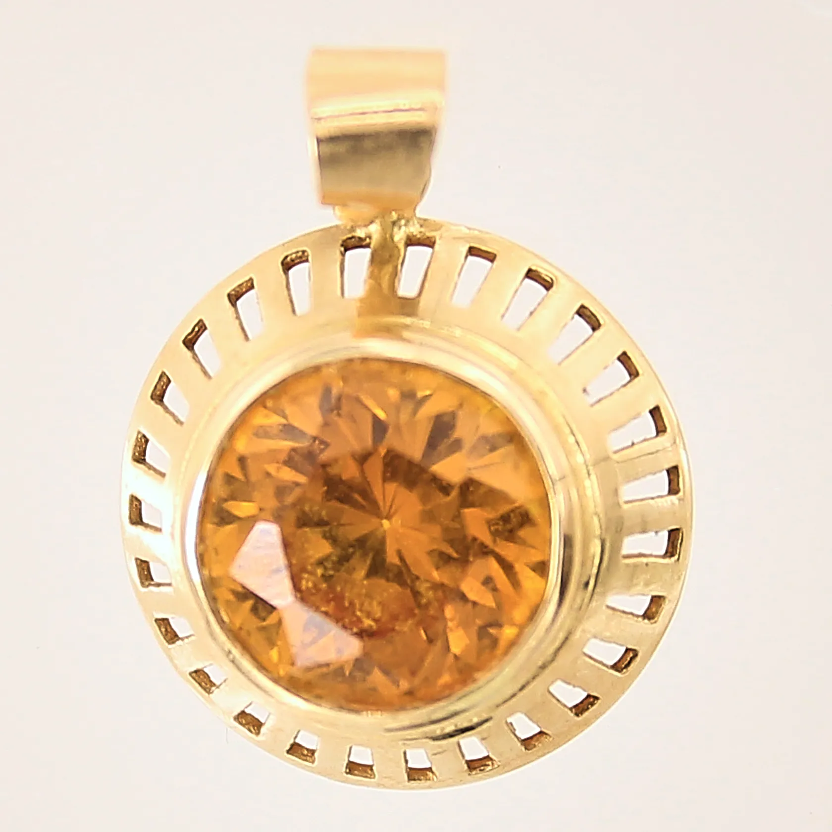 Hänge med citrin, 25x17mm, något bucklig ögla, mindre nagg, 18K Vikt: 3,4 g.