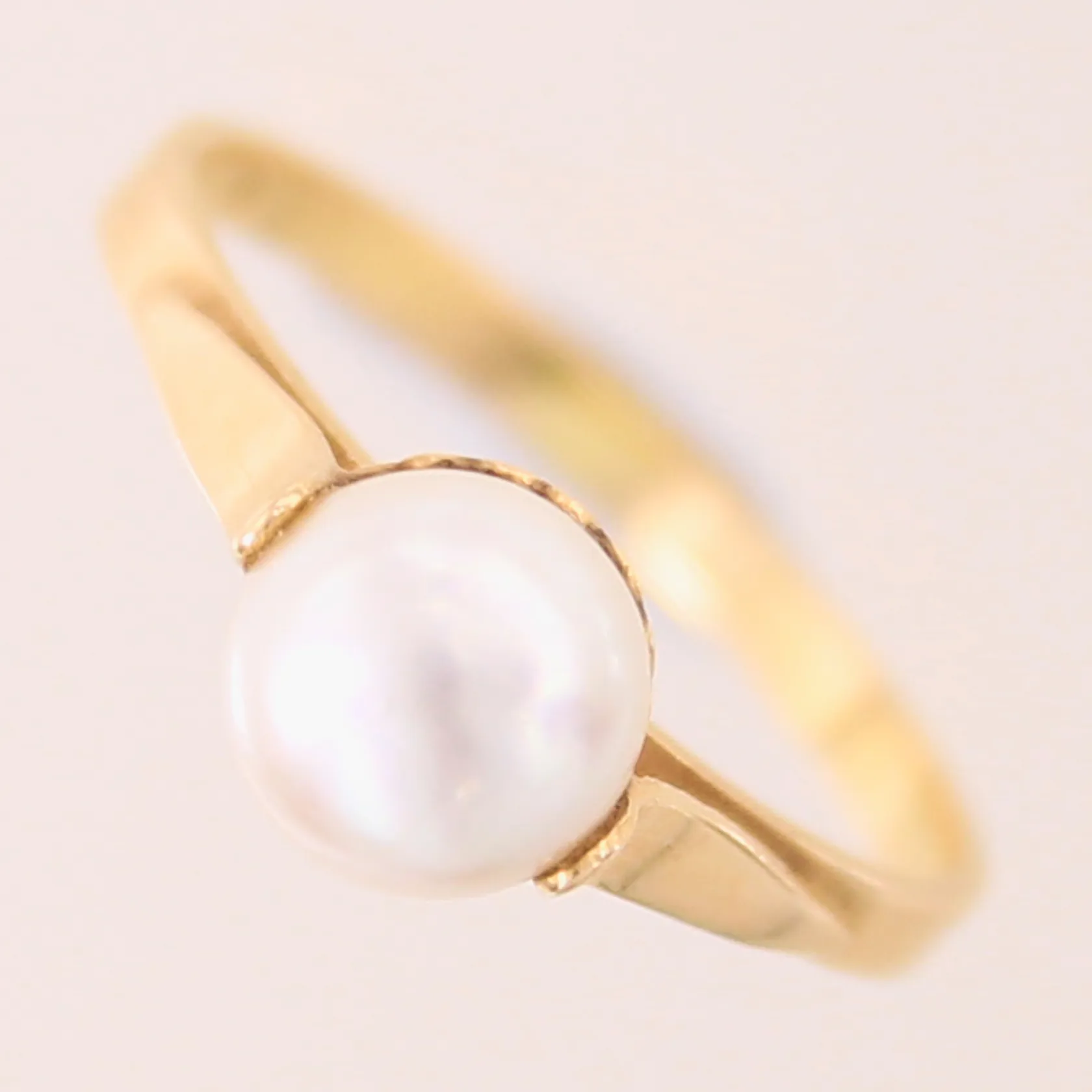 Ring med sötvattenpärla Ø6,9mm, stl 17, bredd 1,3-2,3mm, 18K Vikt: 2,2 g.