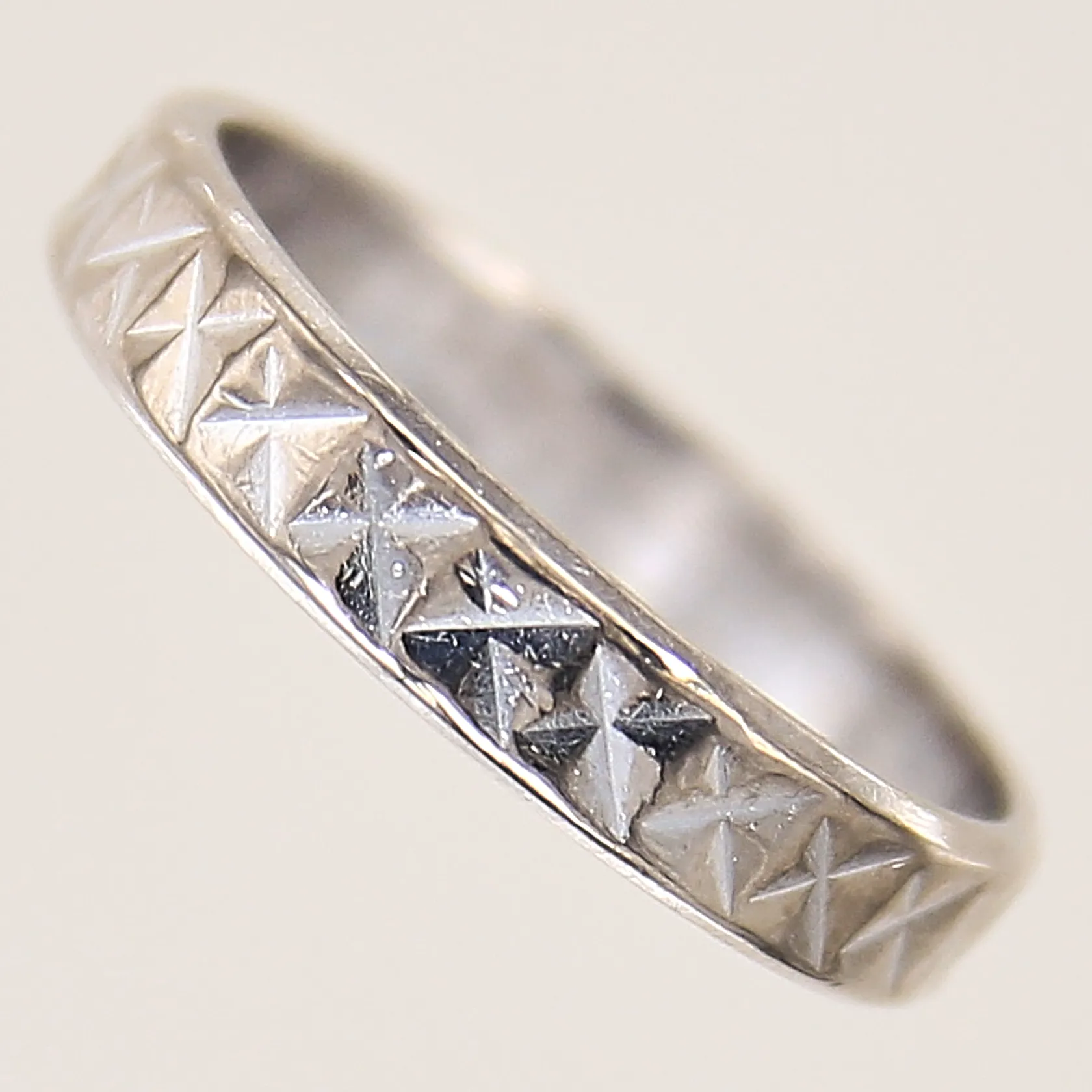 Ring med dekor, stl 17¾, bredd 4mm, vitguld, 18K Vikt: 3,7 g.