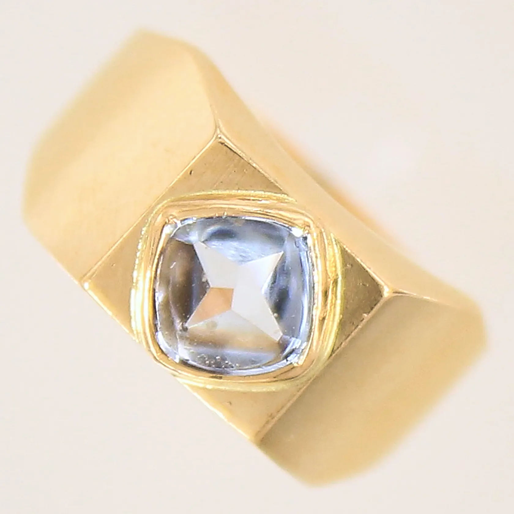 Ring med blå sten, stl: 16½, bredd: 4-8,8mm, 18K Vikt: 3,5 g.