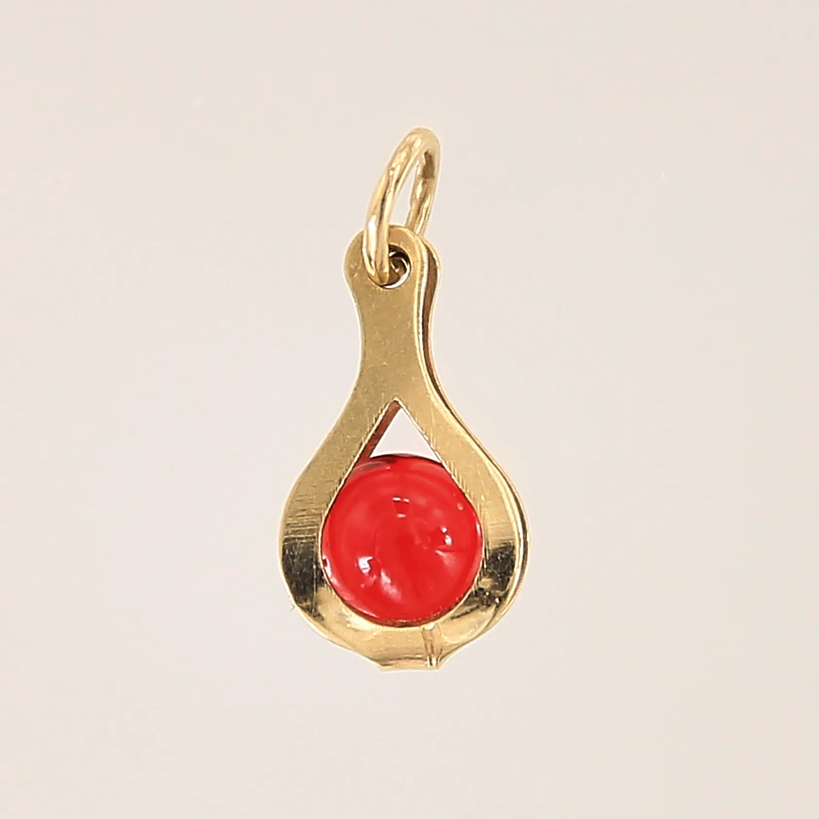 Hänge med röd sten, längd: 14mm, bredd: 2-7mm, 18K Vikt: 0,5 g.