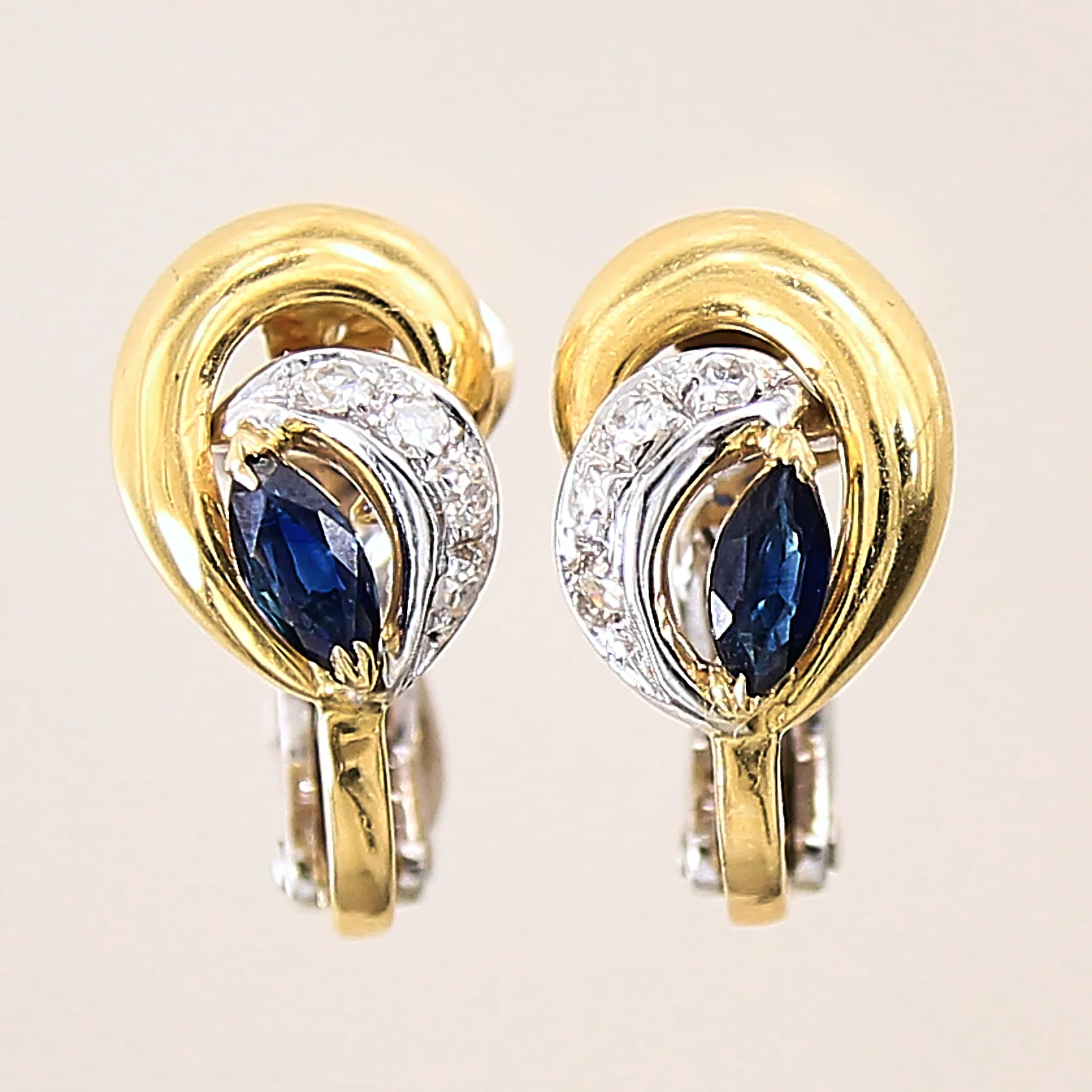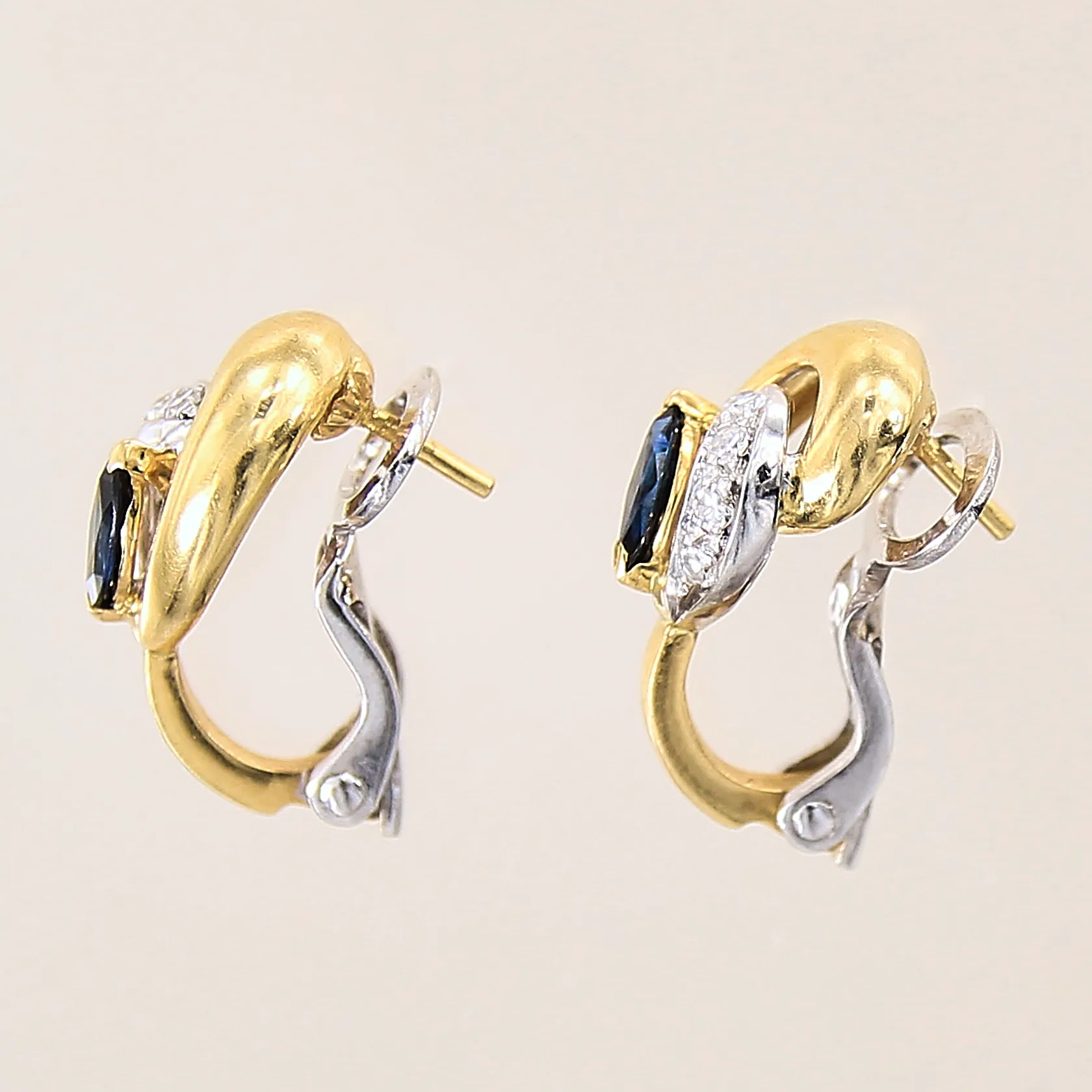 Ett par örhängen med safirer samt 8/8-slipade diamanter 8 x ca 0,02ct, 17x8,5mm, vitguldsdetaljer, 18K Vikt: 5,7 g.