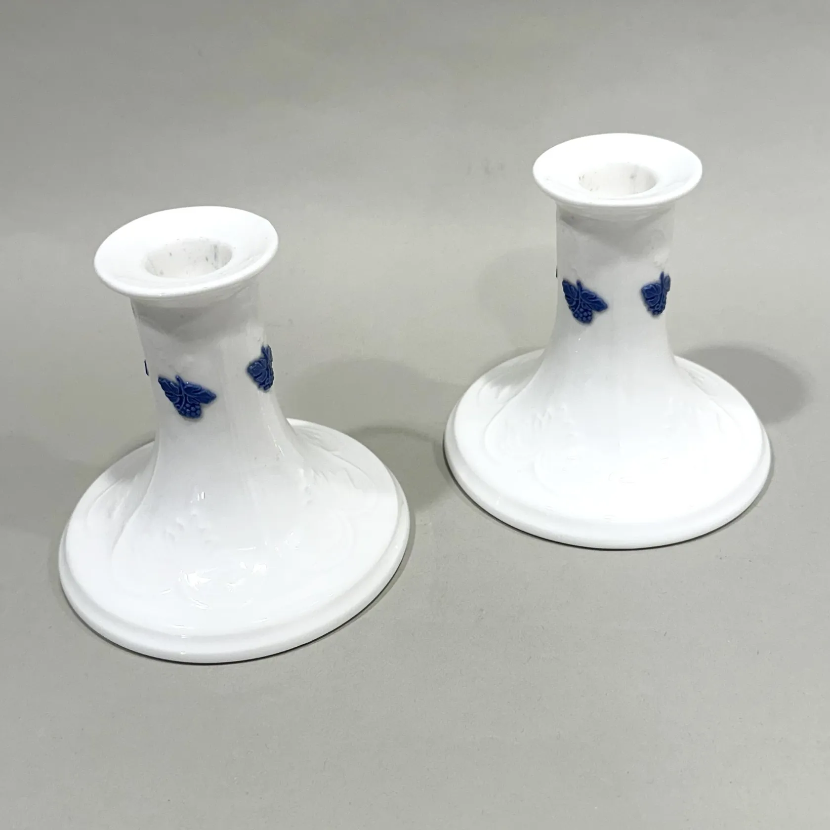 Ett par ljusstakar, Blå Blom, Old Gustavsberg, höjd 10cm, benporslin