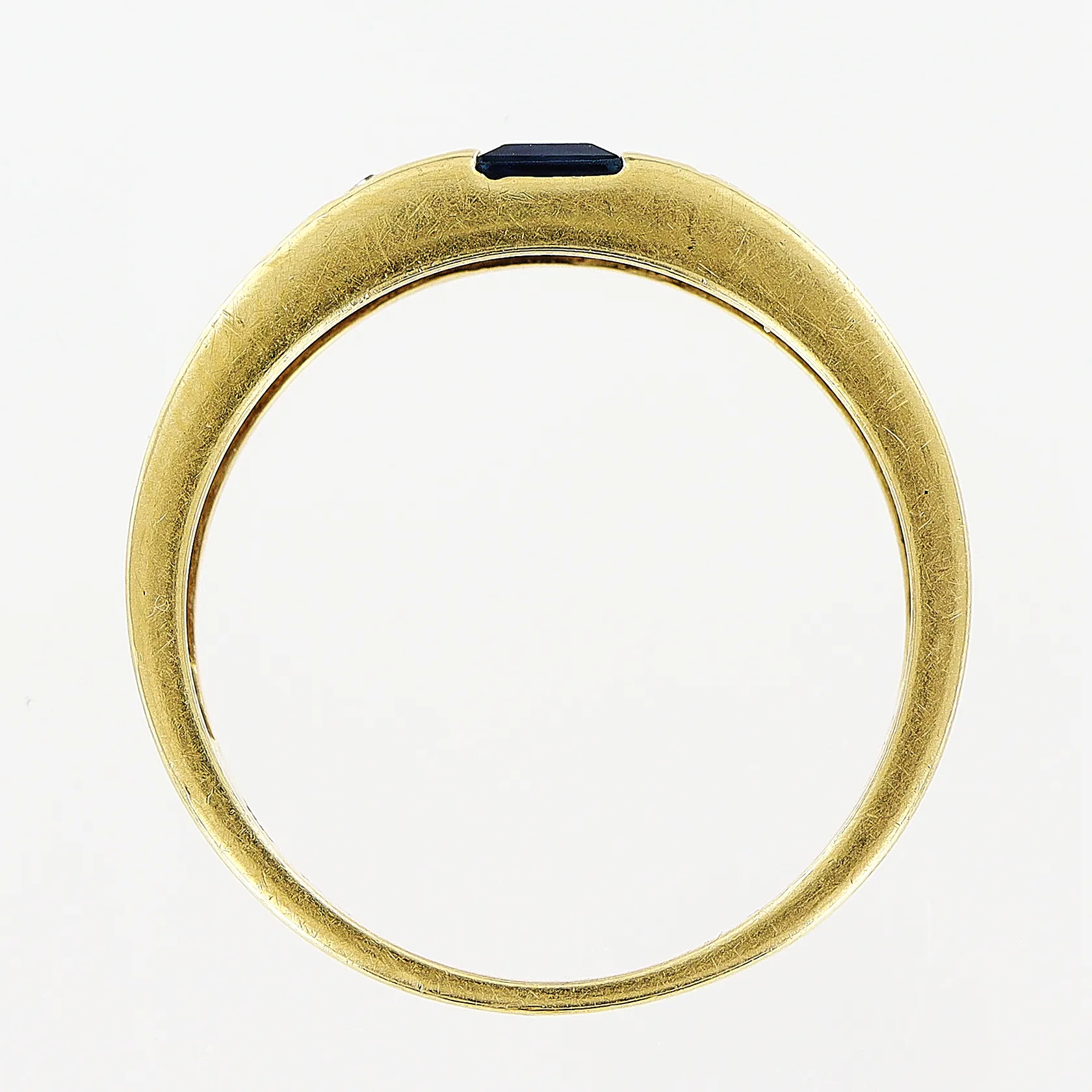 Ring, diamanter 4st totalt 0,02ctv, blå sten, stl 17¼, bredd 2-3,5mm, 18K. Vikt: 3,3 g.