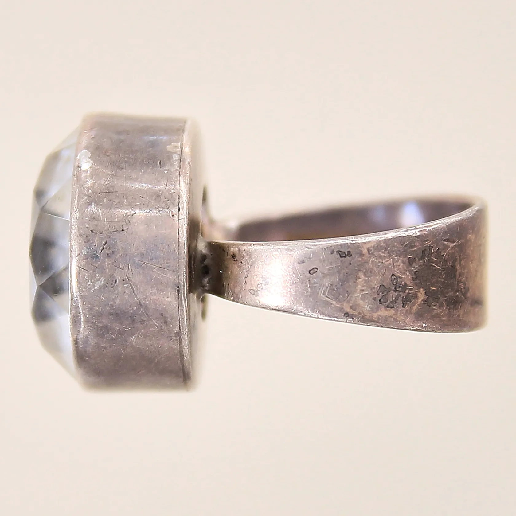 Ring med bergkristall, stl 16¼, bredd 7,6-17mm, design: G. Thysell, silver 925/1000 Vikt: 8,8 g.
