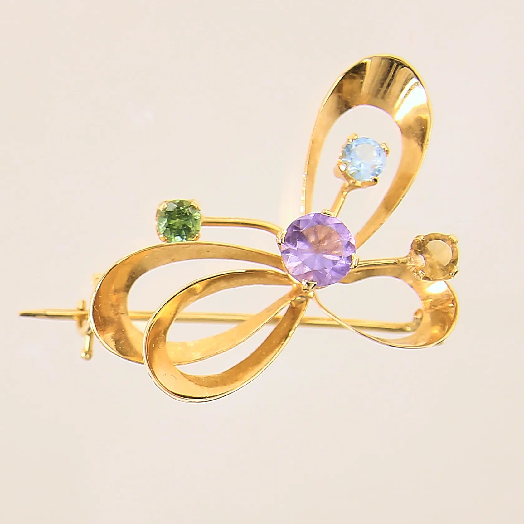 Brosch med färgade stenar, 30x22mm, 18K Vikt: 3,8 g.