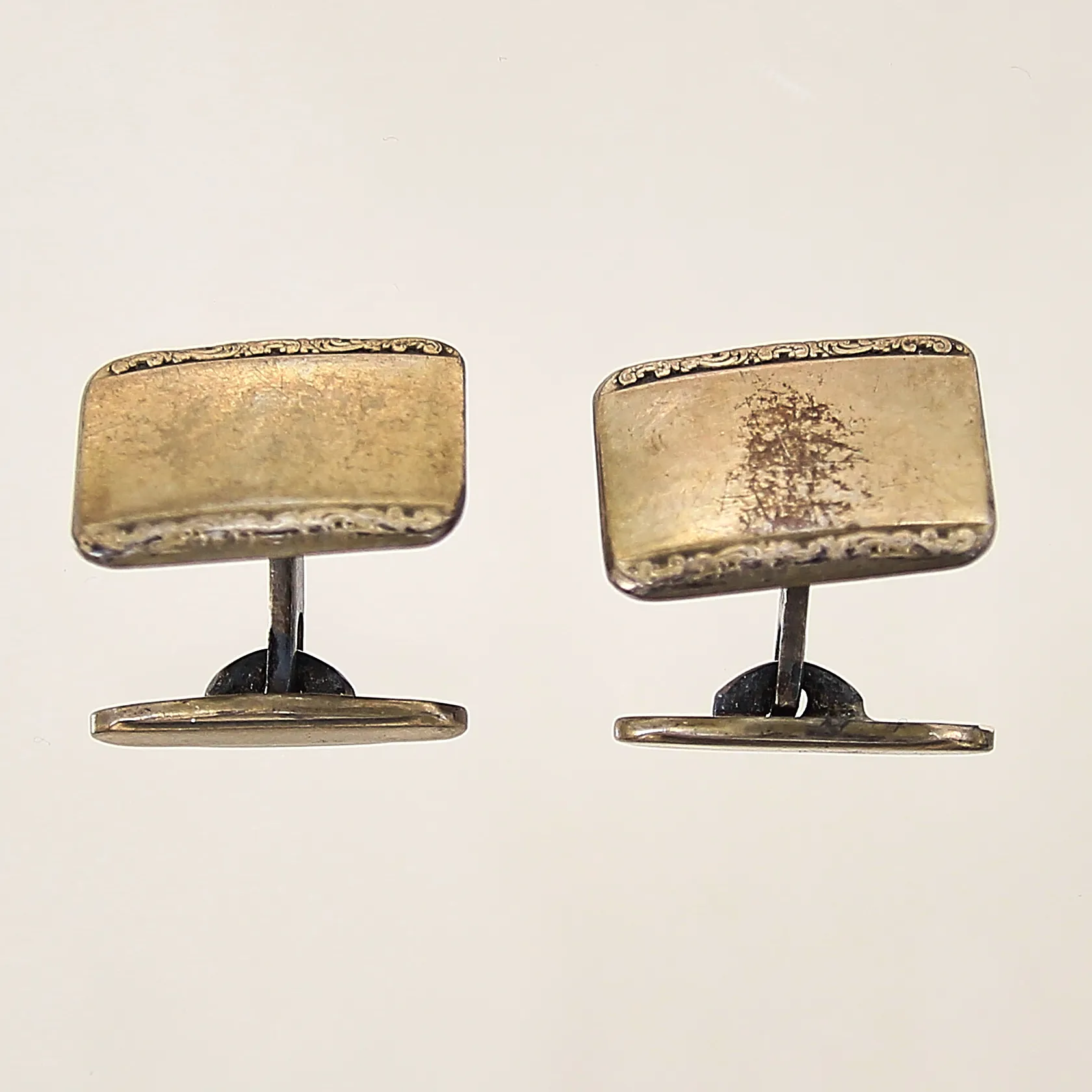 Ett par manschettknappar med dekor, 20x15mm, något skeva, silver 830/1000 Vikt: 14,5 g.