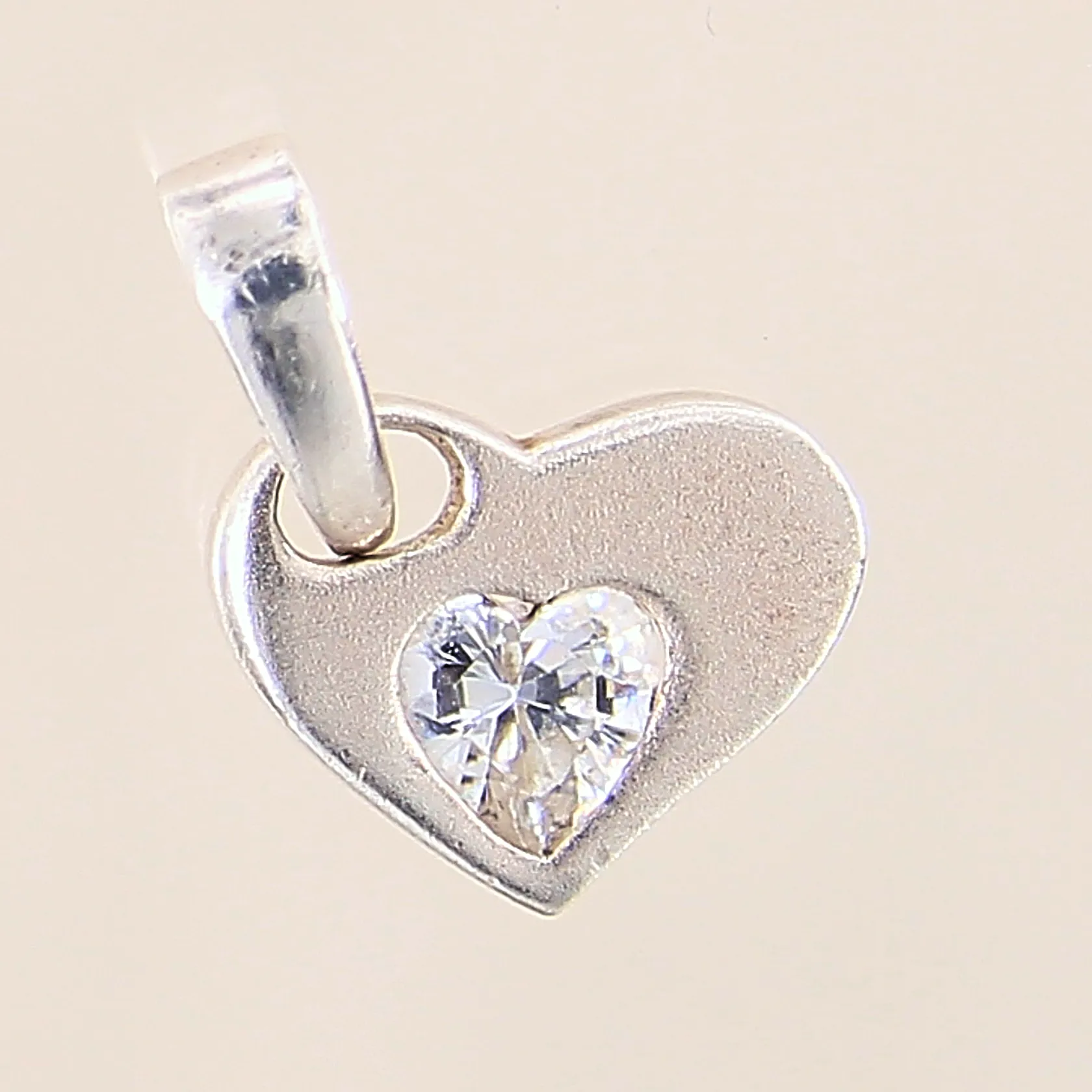 Hänge, hjärta med vita sten, 17x13mm, silver 925/1000 Vikt: 1,7 g.