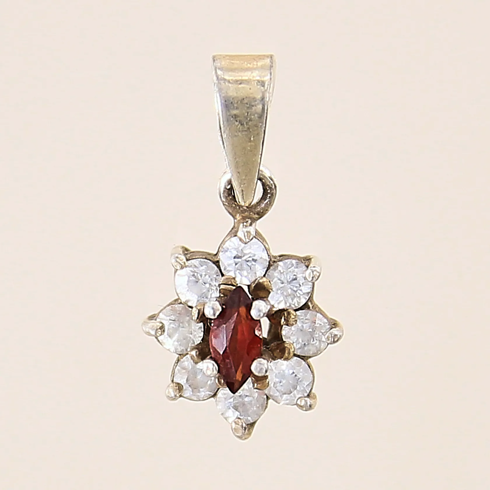 Hänge med röd samt vita stenar, 16x8,4mm, förgyllt silver 835/1000 Vikt: 0,8 g.