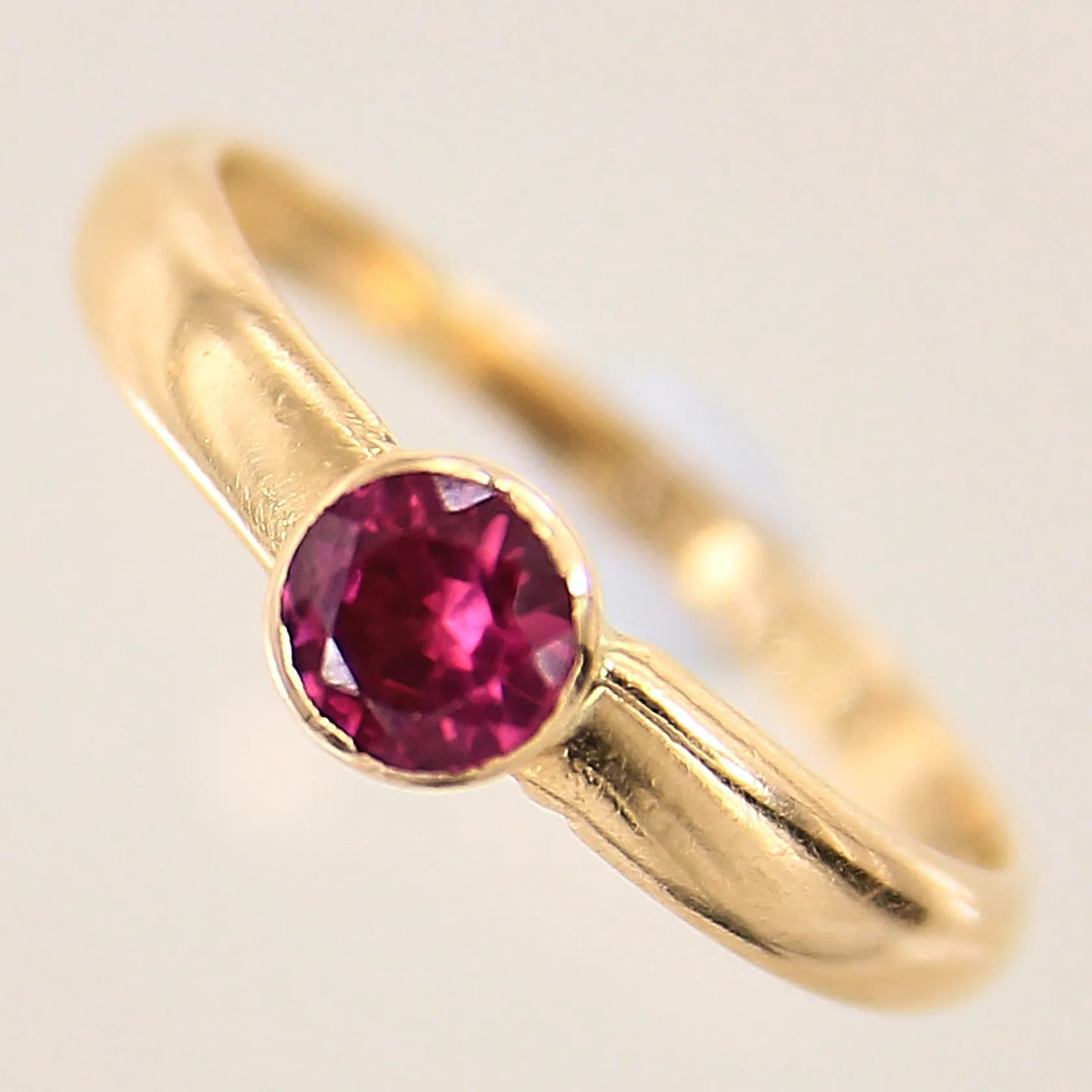 Ring med syntetisk rosa safir, stl 16½, bredd 2-5mm, 18K Vikt: 2,1 g.