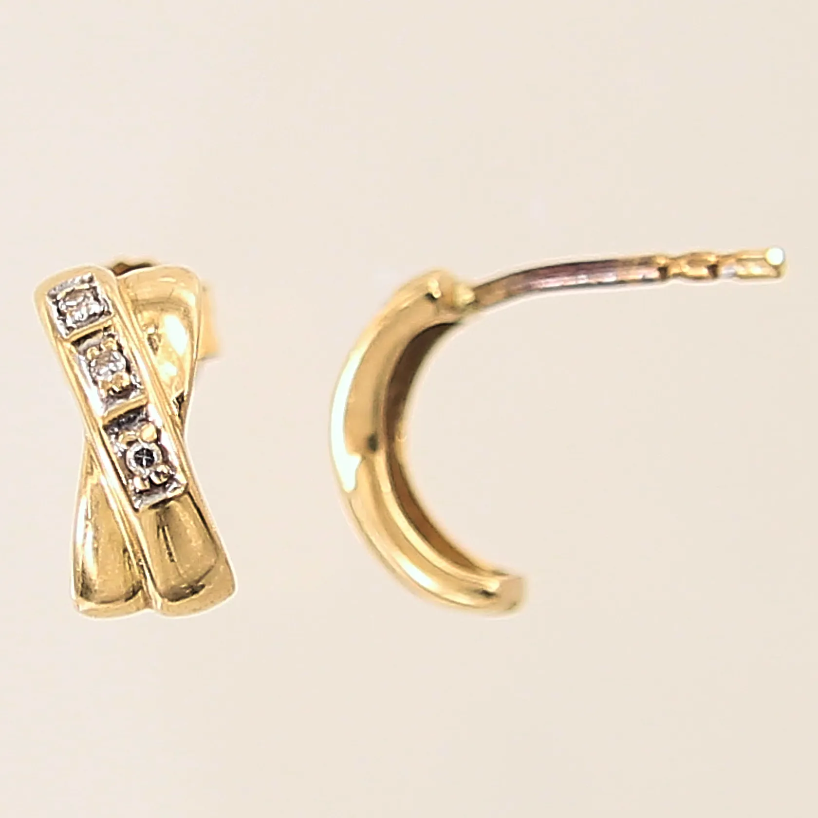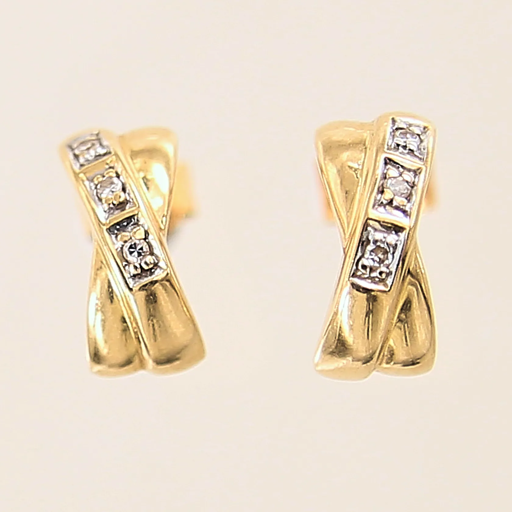Ett par örhängen med 8/8-slipade diamanter 6 x ca 0,005ct, 10x4mm, saknar stoppers, ena stiftet något skevt, 18K Vikt: 1,1 g.