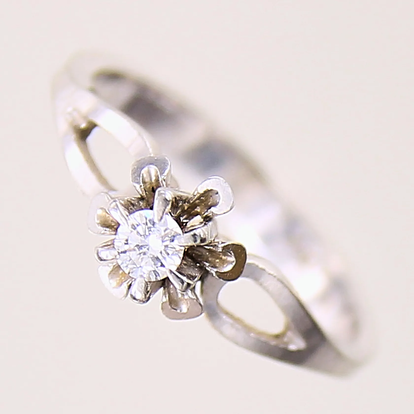 Ring med diamant 0,15ct enligt gravyr, stl 18, bredd 2-7mm, vitguld, 18K Vikt: 3,8 g.