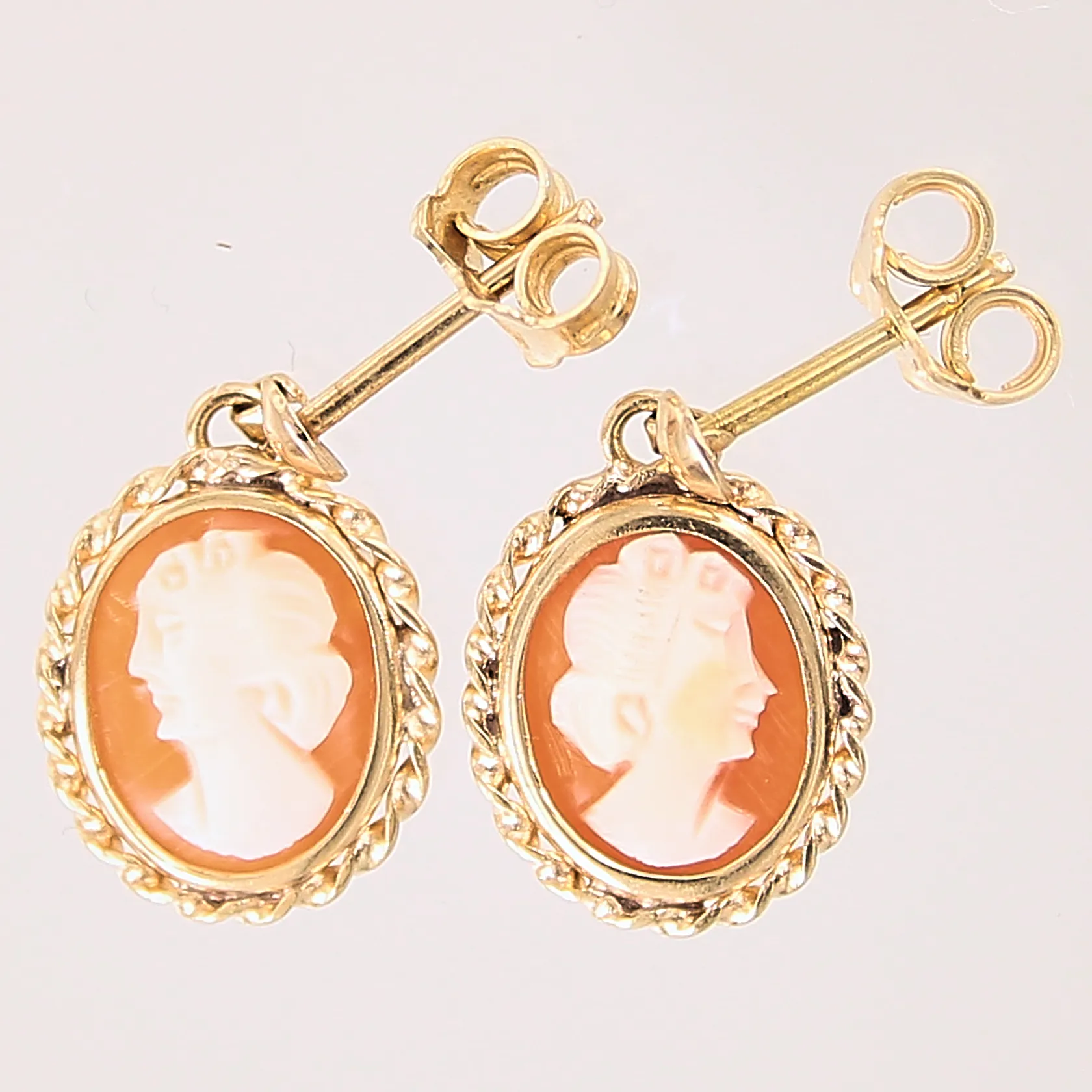Ett par örhängen med camé, ca 10x13,5mm, 18K Vikt: 2,4 g.